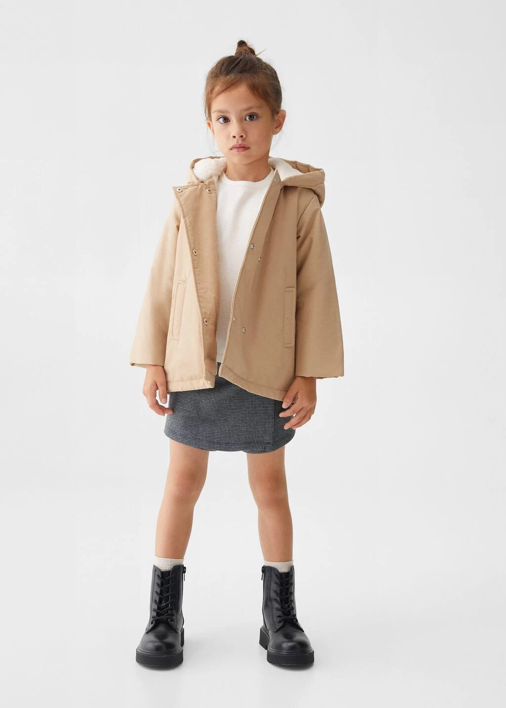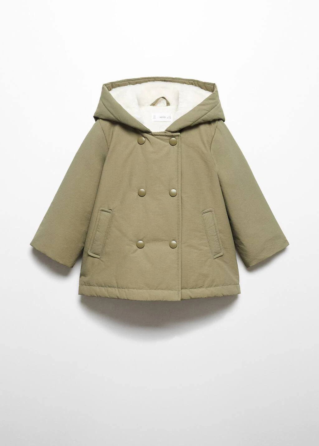 tissu en coton, interieur moutonnee, coupe droite, a capuche, manches longues, fermeture a double boutonnage, fermeture a bouton-pression, etiquette d’identite a l’interieur Composition: 60% coton,40% polyamide. Doublure: 100% polyester. Doublure manches: 100% polyester. Rembourrage: 100% polyester. Fourrure capuche: 100% polyester