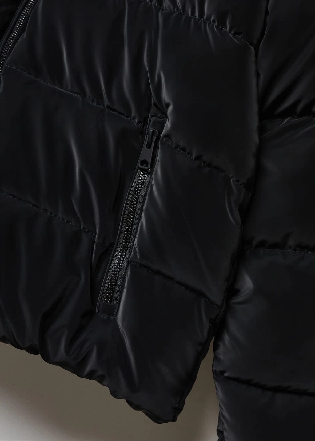 tissu polyester, coupe courte, matelasse, deux poches zippees sur les cotes, a capucheComposition: 100% polyester. Doublure: 100% polyester. Rembourrage: 100% polyester. Revêtement: 100% polyurethane