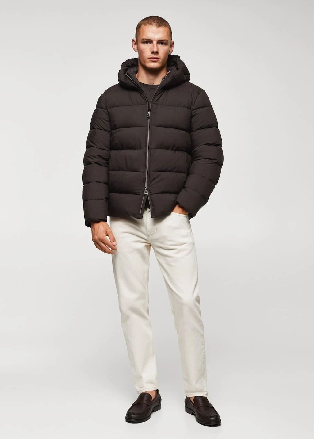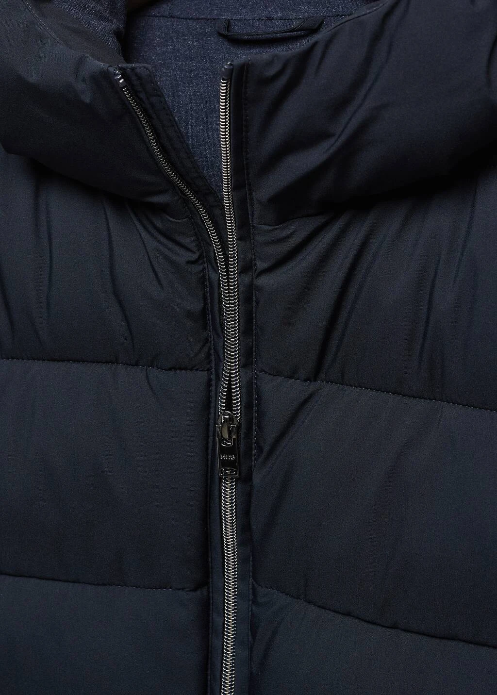 les essentiels : concus pour durer, thermoregulateur : regule la temperature du corps, hydrofuge : tissu technique resistant a l’eau, tissu impermeable, rembourrage en polyester recycle, regular-fit, matelasse, capuche, fermeture eclair a l’avant, manches longues, deux poches avant, bas droit, le mannequin mesure 190 cm et porte une taille mComposition: 100% polyester. Doublure: 78% viscose,18% polyester,4% elasthanne. Doublure manches: 100% polyamide. Rembourrage: 100% polyester. Lisiere: 100% polyamide. Doublure poches: 78% viscose,18% polyester,4% elasthanne