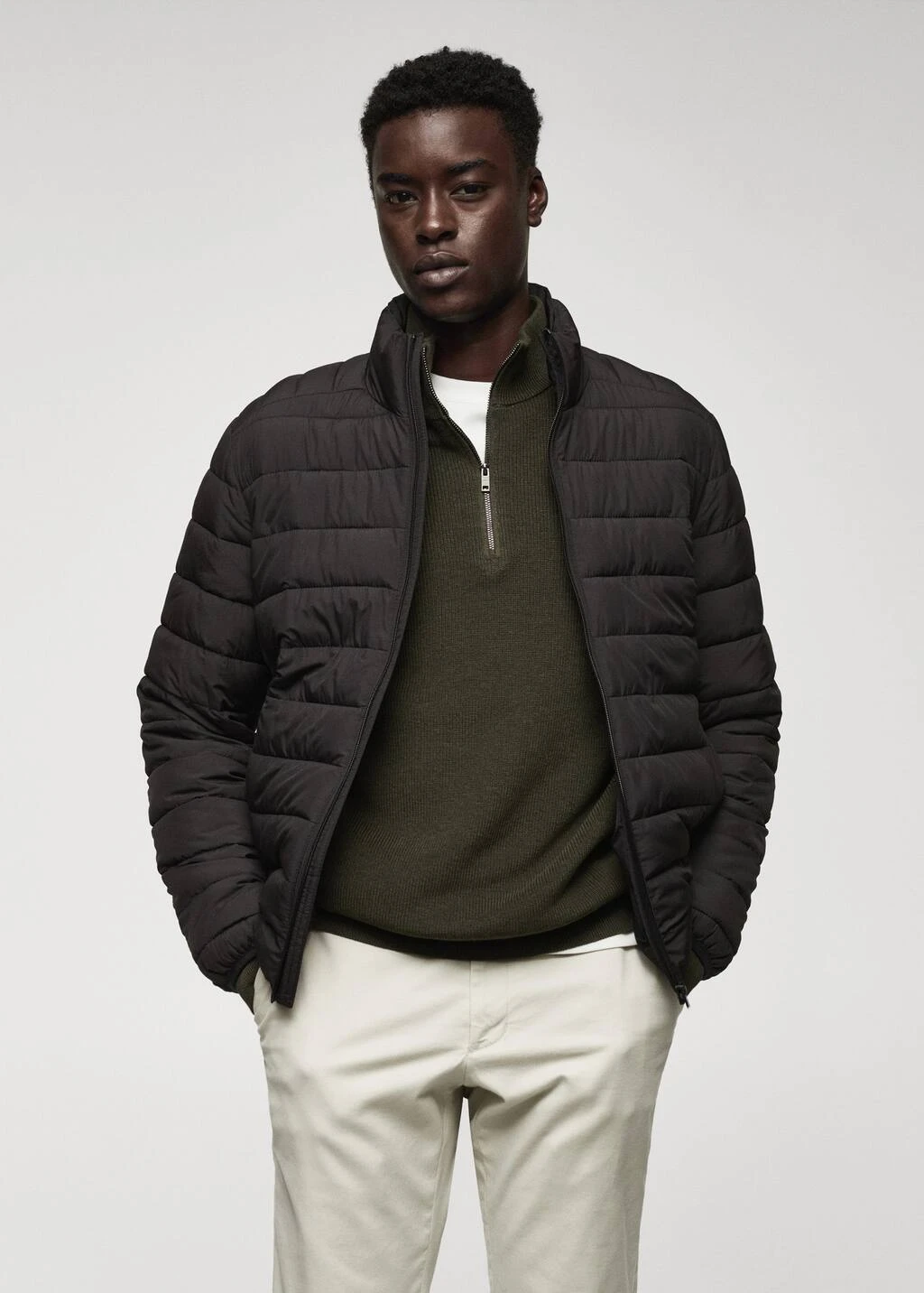 les essentiels : concus pour durer, rembourrage 100 % polyester recycle, hydrofuge : tissu technique resistant a l’eau, tissu respirant, isolant thermique, slim-fit, matelasse ultraleger, col cheminee zippe, fermeture eclair sur le devant, deux poches zippees sur les cotes, manches longues raglan a poignets elastiques, bas elastique, deux poches interieures, le mannequin mesure 190 cm et porte une taille mComposition: 100% polyester recyclé. Doublure: 100% polyester. Rembourrage: 100% polyester recyclé. Doublure poches: 100% polyester