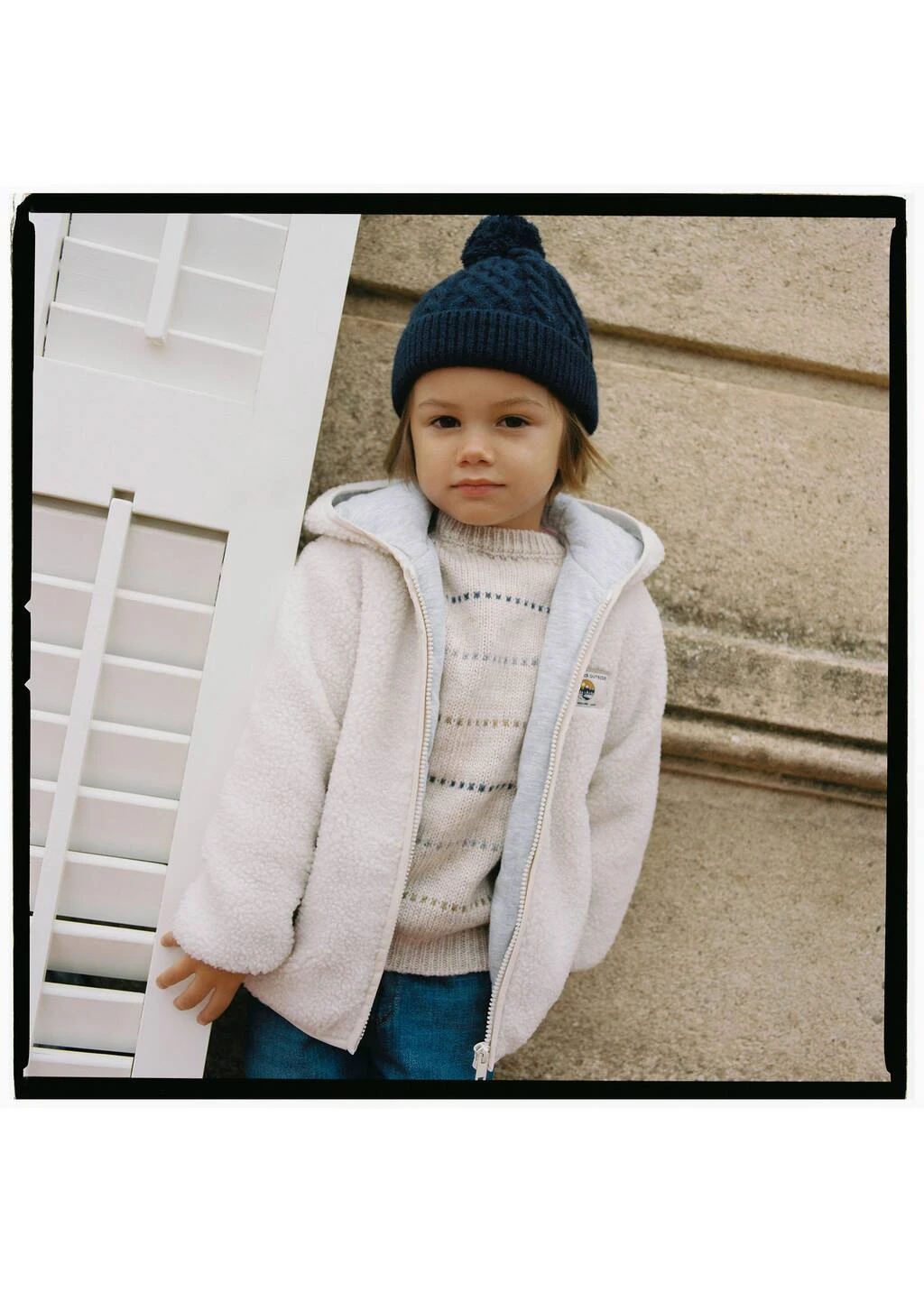 tissu mouton, coupe droite, fermeture eclair, deux poches a rabat, a capuche, manches longues, etiquette d’identite a l’interieur Composition: 100% polyester. Doublure: 65% polyester,35% coton. Doublure manches: 100% polyester. Rembourrage: 100% polyester