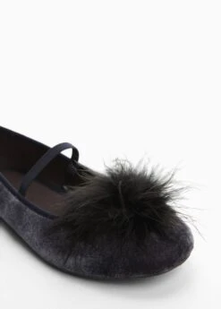 tissu en velours, bout rond, pomponCarre: 100% polyester. Doublure: 100% coton. Ornement: 100% plumes de dinde. Semelle: 100% coton. Semelle: 100% caoutchouc thermoplastique. Fixation semelle: 100% collée