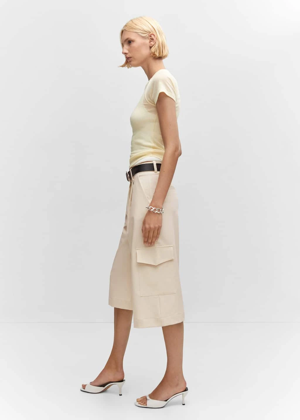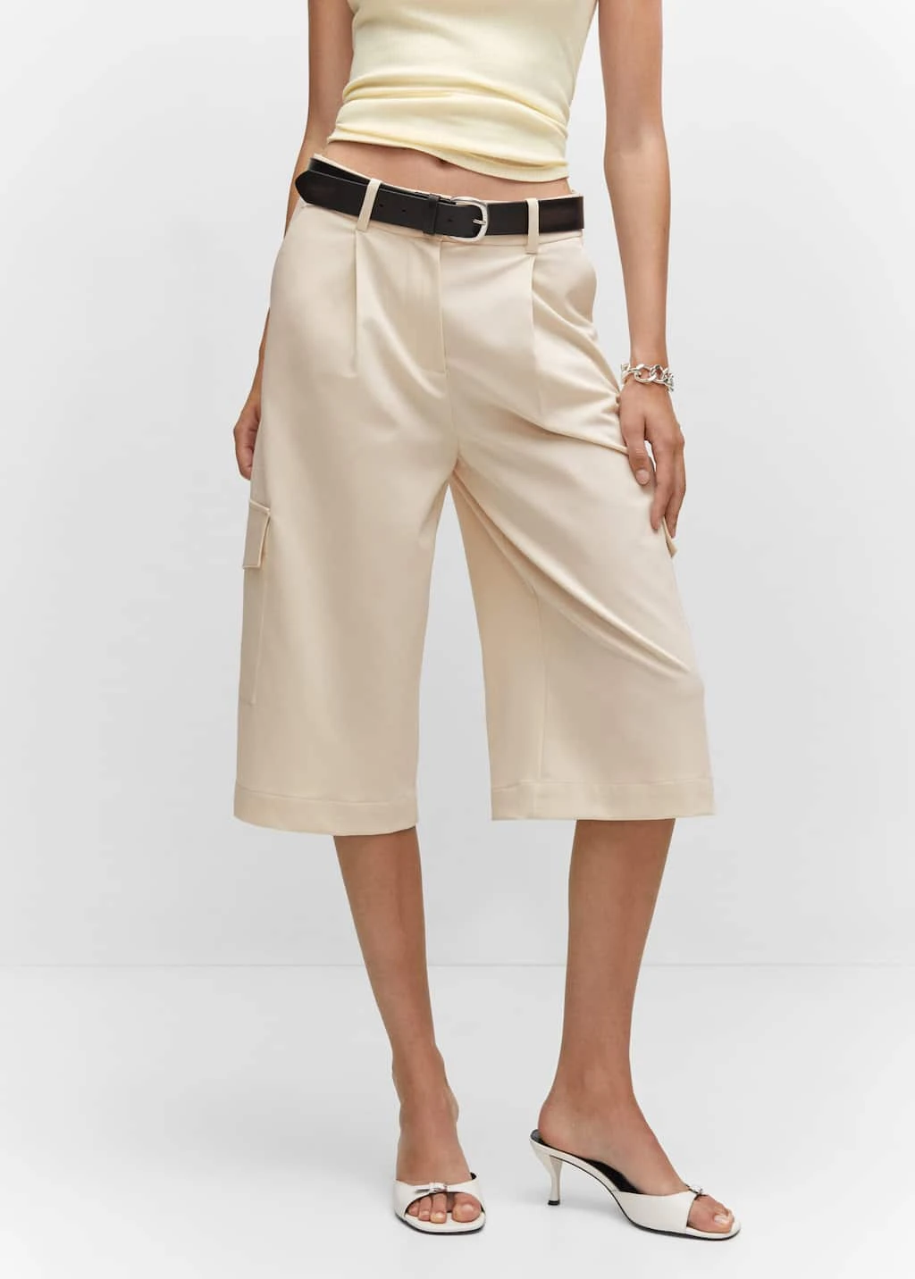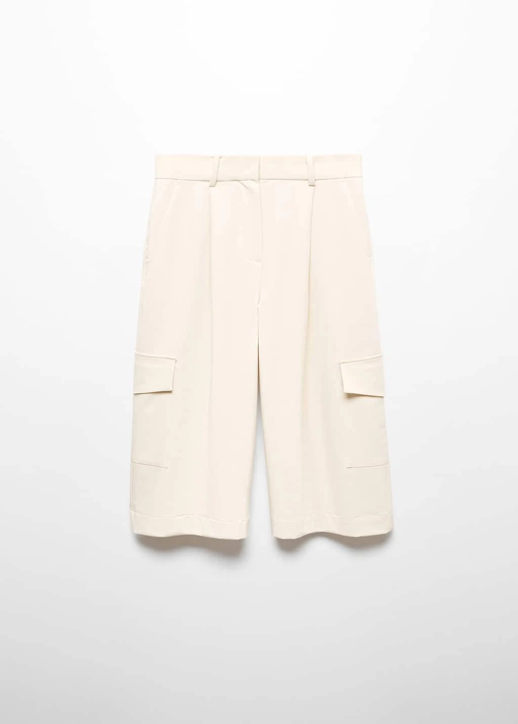 droit, coupe longue, passants pour la ceinture, deux poches cargo, poches laterales, deux poches passepoilees a l’arriere, fermeture eclair avec crochet et bouton dissimulesComposition: 76% polyester,17% viscose,7% elasthanne. Doublure: 100% coton