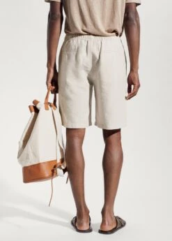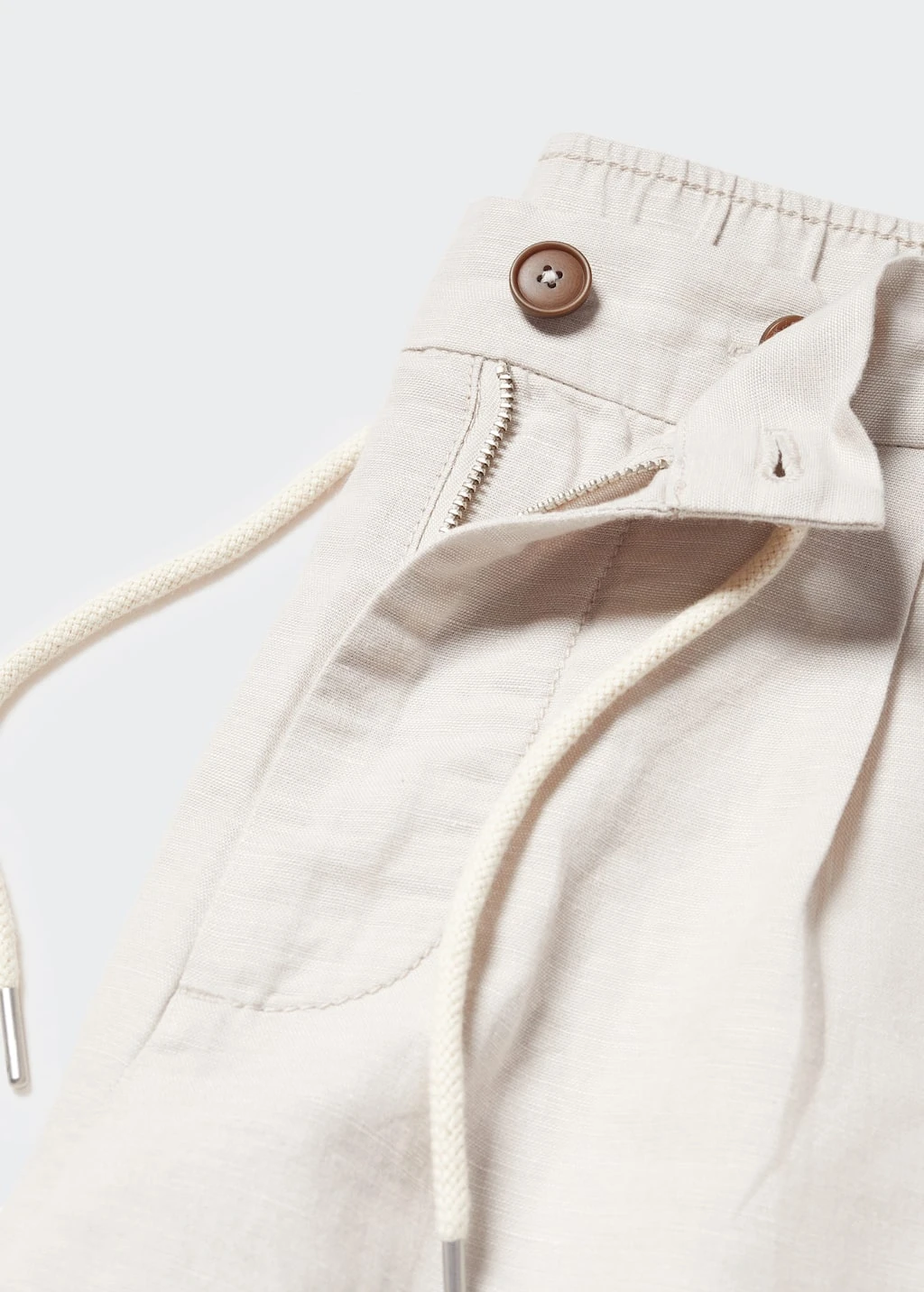slim-fit, tissu en coton et lin melanges, fermeture eclair et boutons dissimules, taille elastique avec cordon, pinces sur le devant, deux poches passepoilees sur les cotes, collection essentielsCOMPOSITION:55% LIN,45% COTON. DOUBLURE POCHES:100% COTON