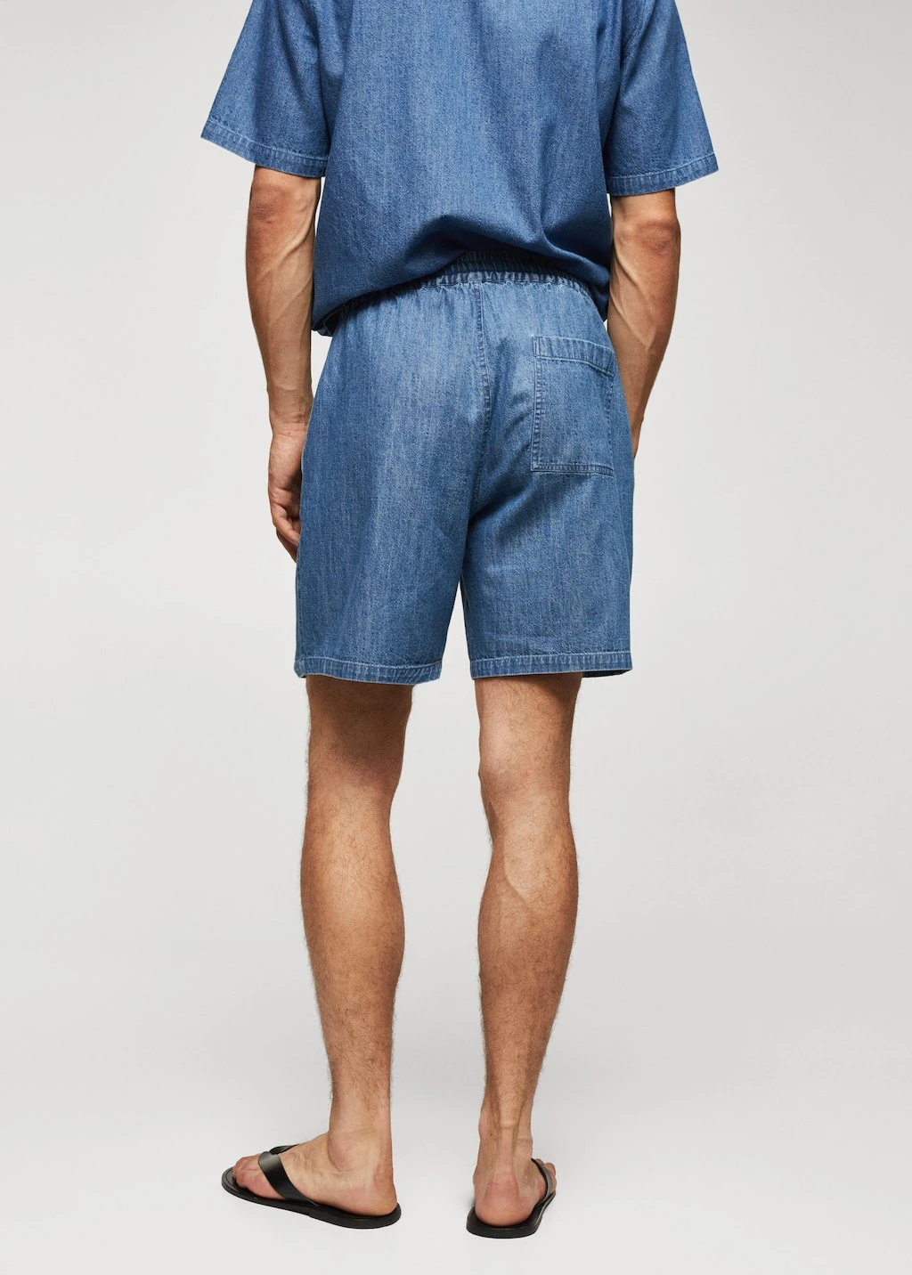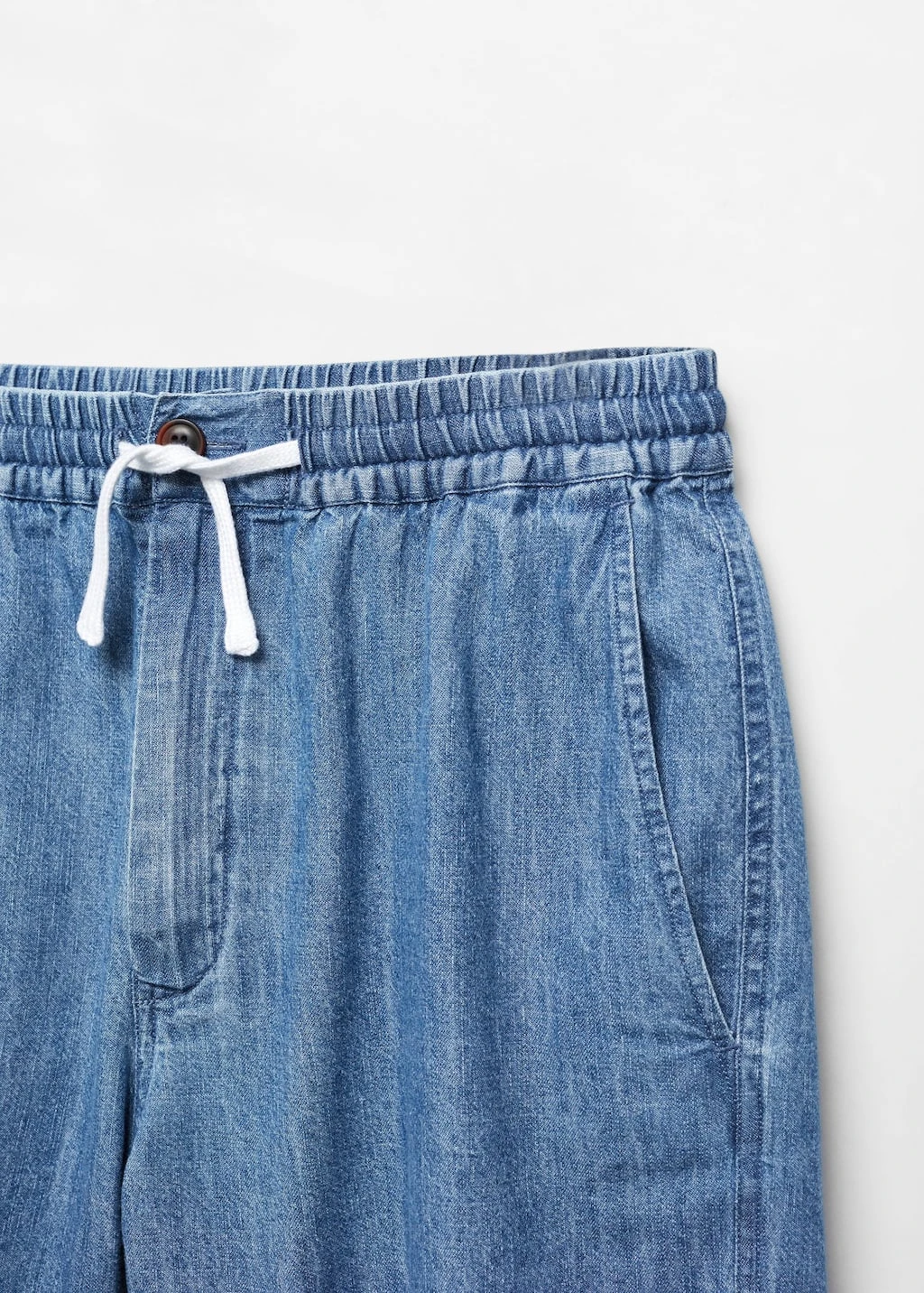 100 % coton, coton chambray, regular-fit, coupe courte, taille elastique avec cordon de serrage, fermeture eclair avec bouton, deux poches laterales, poche plaquee a l’arriere, ensemble disponible, le mannequin mesure 190 cm et porte une taille 42Composition: 100% coton