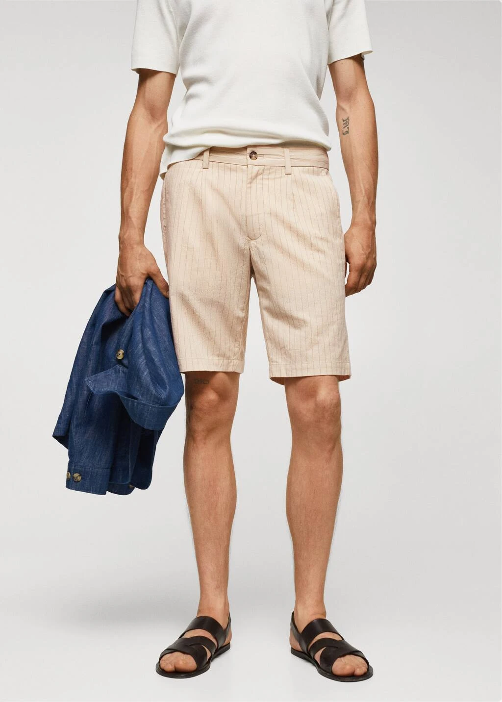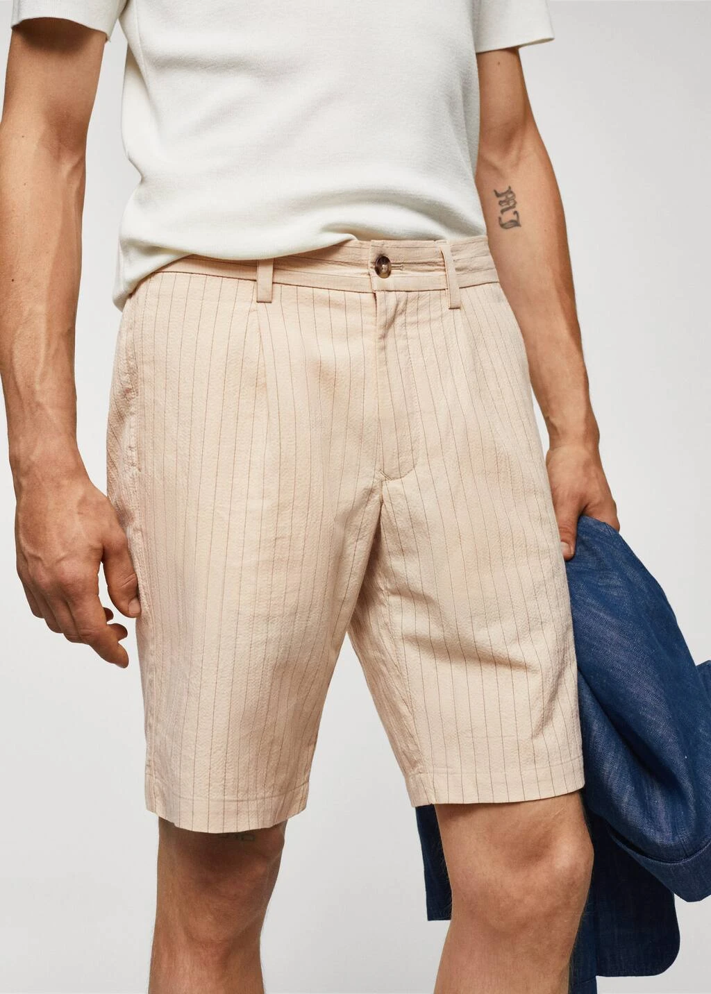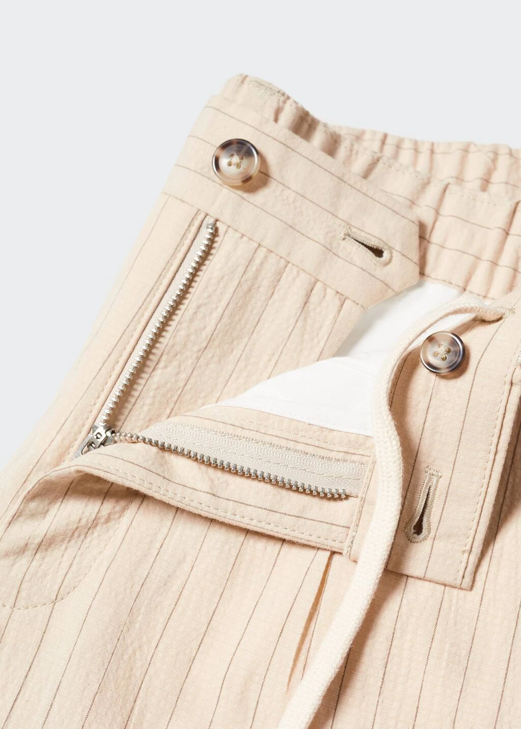 slim-fit, tissu de coton et lin melange, tissu seersucker, imprime fines rayures, double bouton et fermeture eclair, passants de ceinture , taille elastiquee a l’arriere, cordon interieur de serrage a la taille, pinces sur le devant, deux poches avant, poche passepoilee boutonnee a l’arriere, le mannequin mesure 190 cm et porte une taille 42Composition: 76% coton,22% lin,2% elasthanne. Doublure poches: 100% coton
