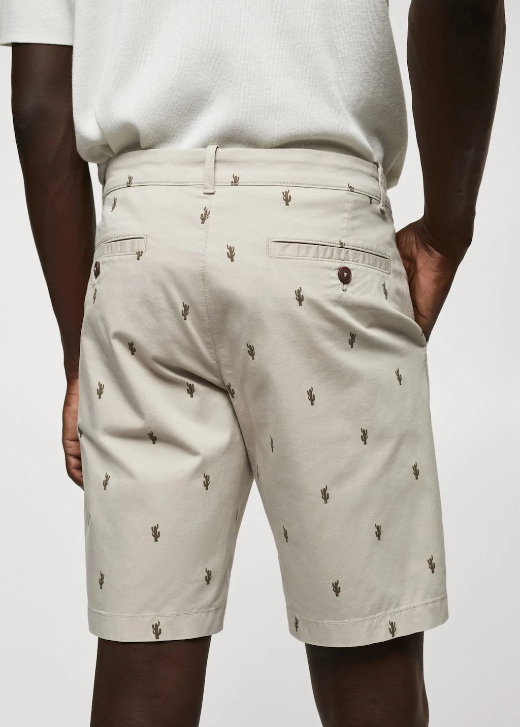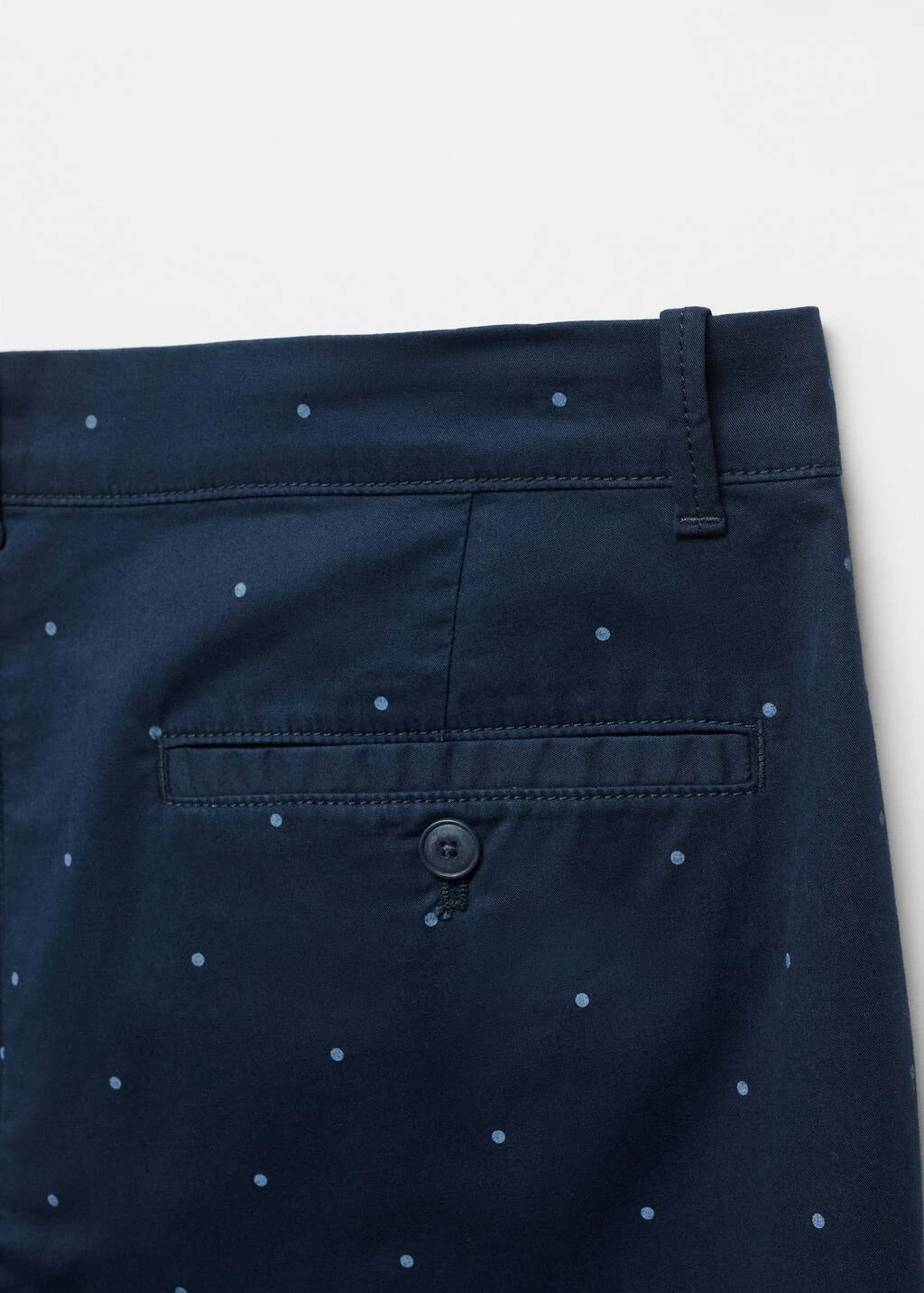 slim-fit, tissu de coton legerement extensible, imprime mini, fermeture eclair avec bouton, passants de ceinture , deux poches avant, deux poches passepoilees boutonnees a l’arriere, le mannequin mesure 190 cm et porte une taille 42Composition: 98% coton,2% elasthanne. Doublure poches: 65% polyester,35% coton