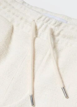 tissu de coton et polyester melanges, structure horizontale a fils irreguliers, taille elastique avec cordon de serrage, braguette decorative, deux poches laterales, poche plaquee a l’arriere, le mannequin mesure 190 cm et porte une taille mComposition: 50% coton,50% polyester