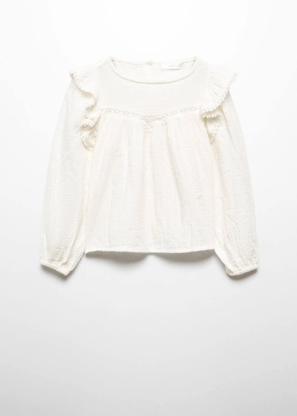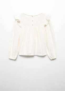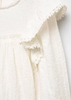 100 % coton, coupe droite, pois brodes, details volantes, col rond, manches longues, fermeture boutonnee sur le devantComposition: 100% coton