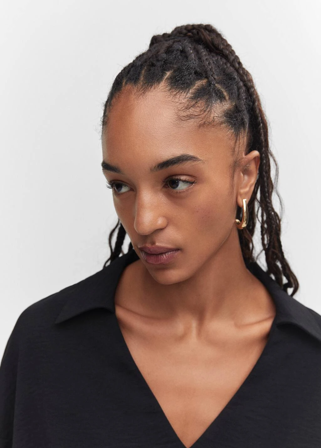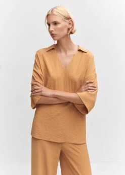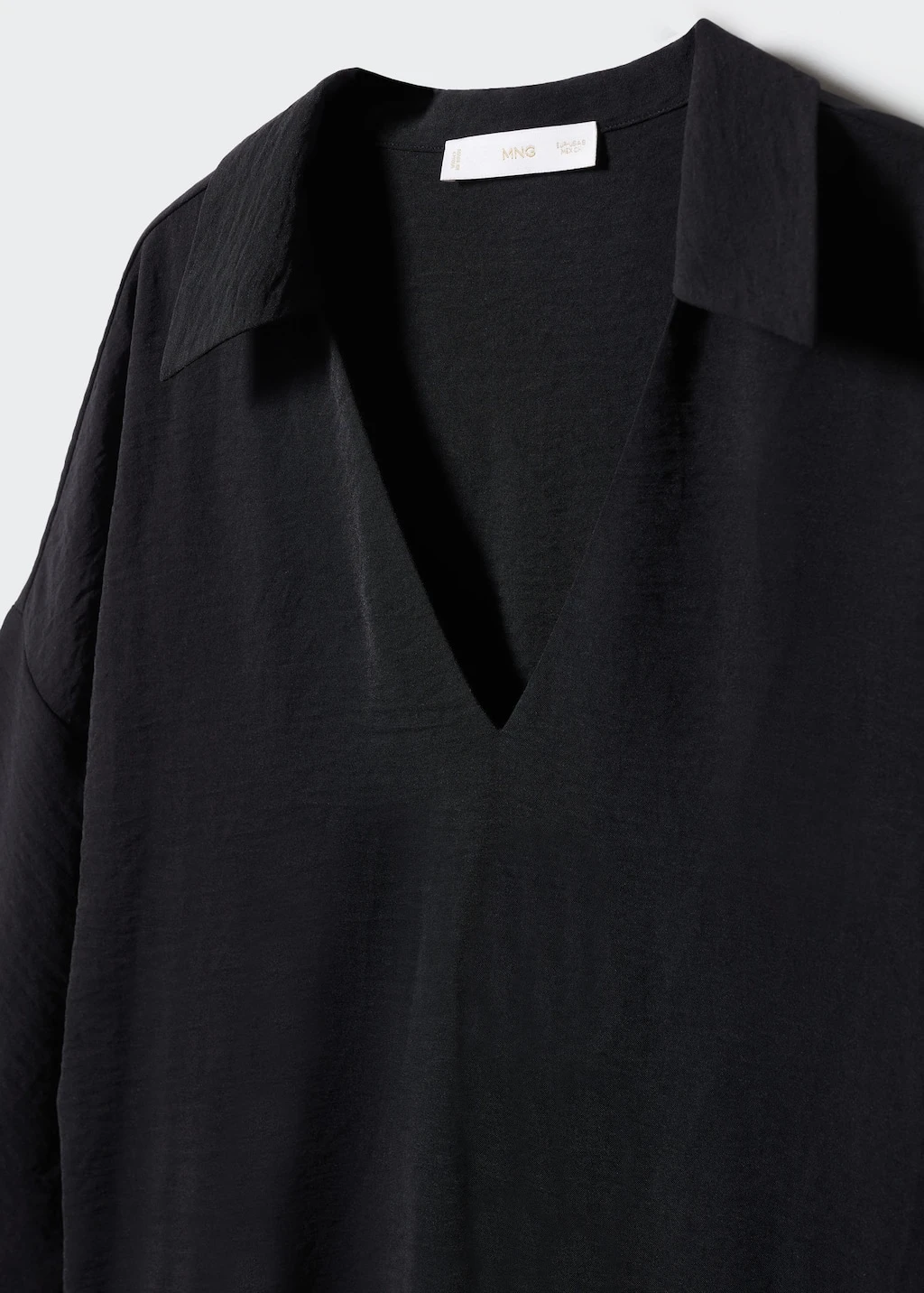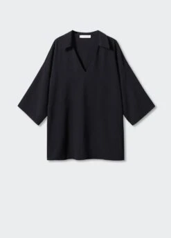 droit, coupe longue, col chemise, col en v, manches cloche trois quarts, total lookComposition: 60% polyester,40% polyester recyclé