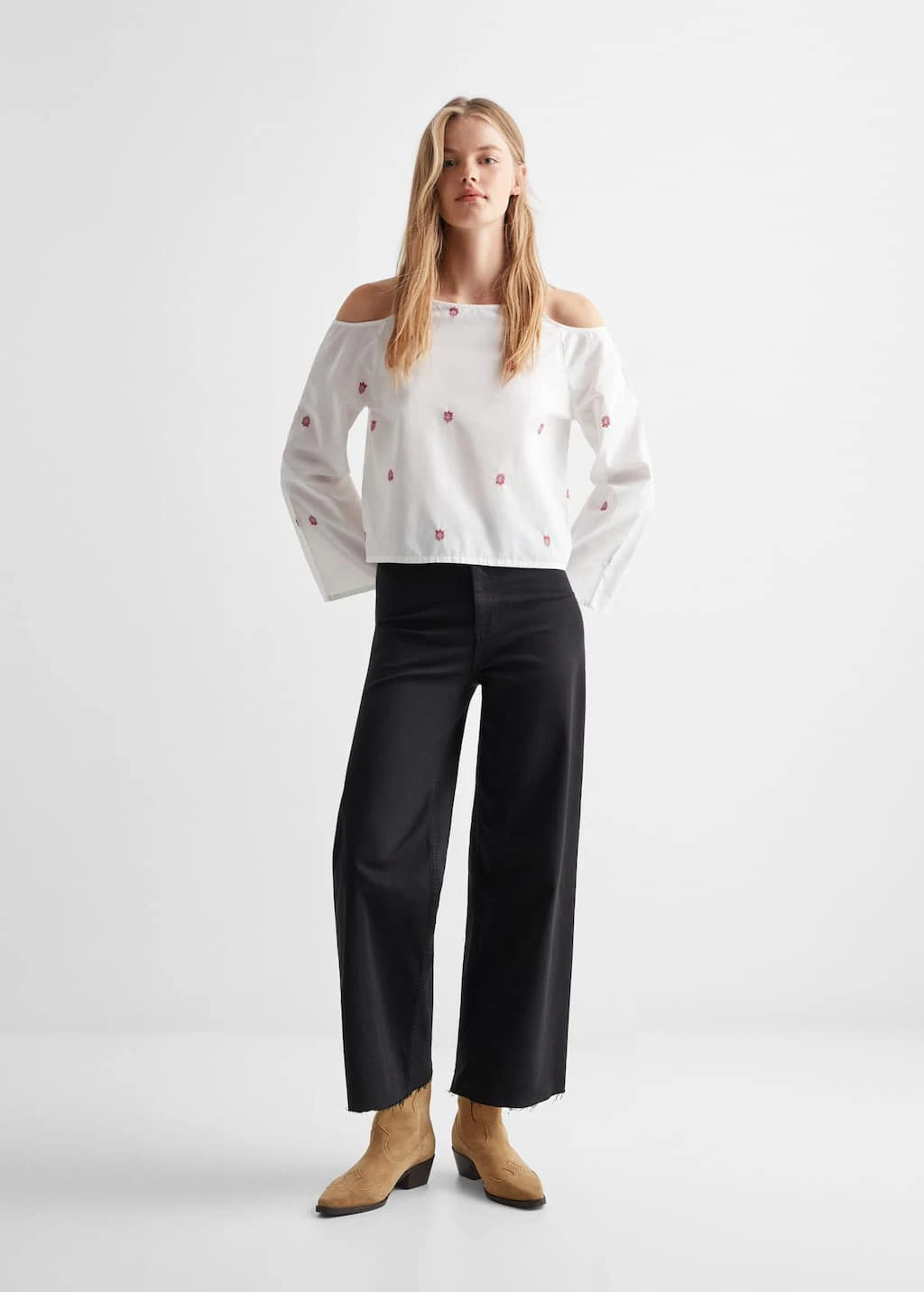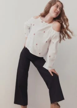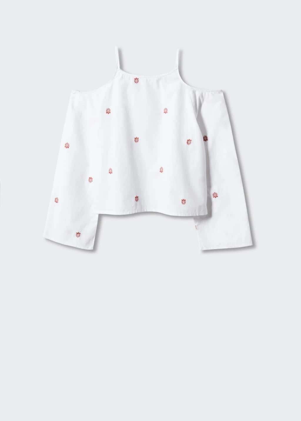 100 % coton, imprime, droit, ouvertures sur l’epaule, col carre, manches longuesComposition: 100% coton