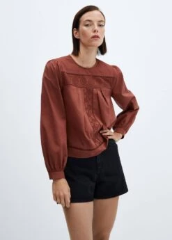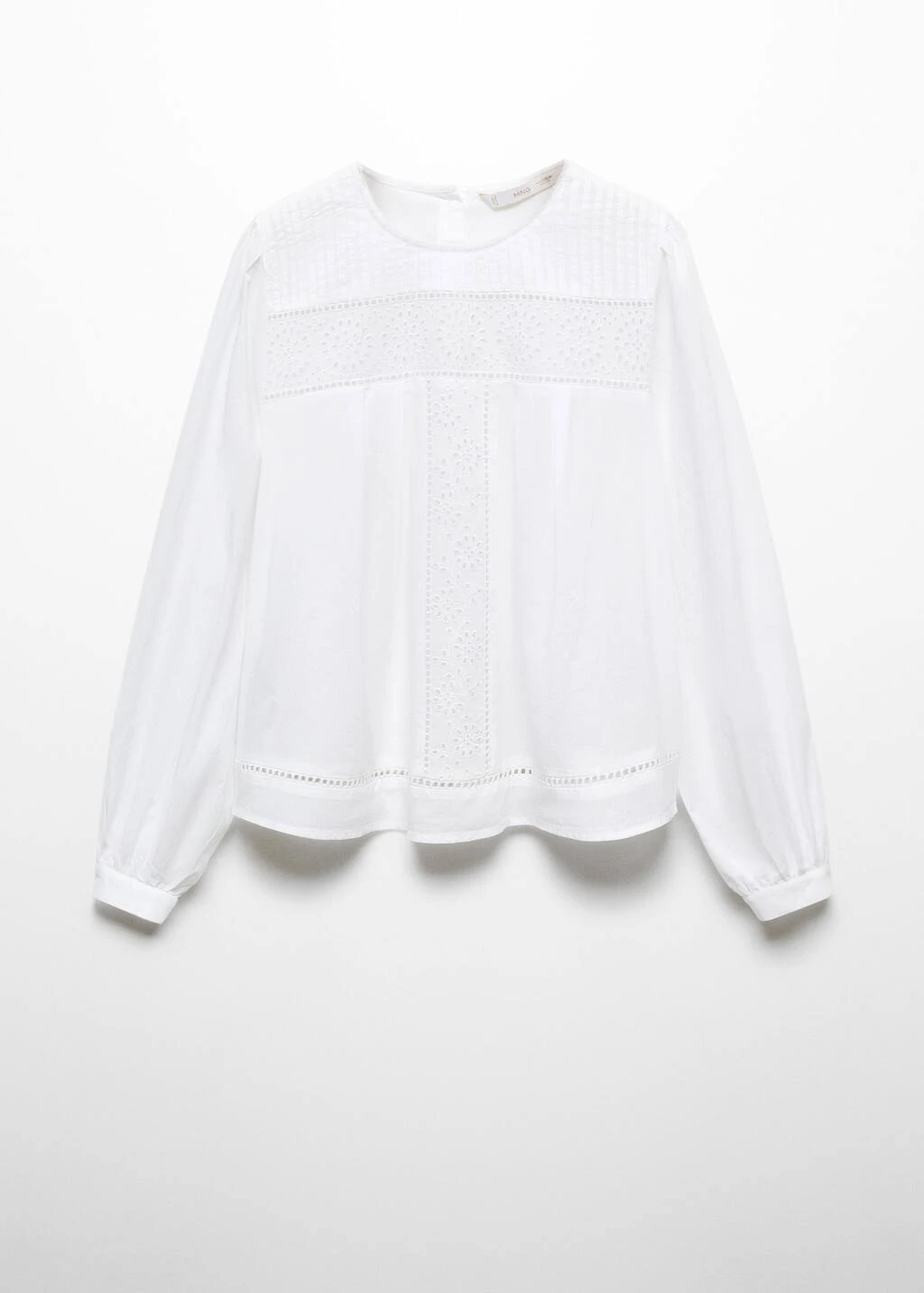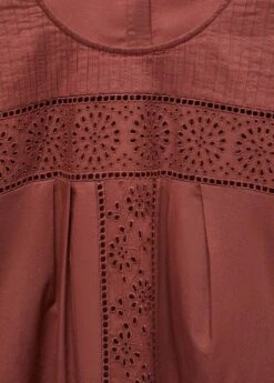 100 % coton, style oversize, col rond, manches longues avec poignets boutonnes, bouton de fermeture a l’arriere, details ajouresComposition: 100% coton. Broderie: 100% polyester