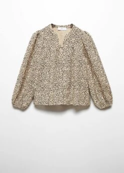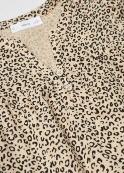 100 % coton, coupe droite, imprime leopard, col en v, col boutonne, manches longues, fermeture frontale.Composition: 100% coton