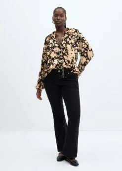 tissu fluide, coupe longue, imprime fleurs, col en v, manches longues, manches bouffantes a poignets elastiques, lien a nouer autour du cou, fermeture boutonnee sur le devant, volants lateraux decoratifs, sans doublure interieure, disponible plusComposition: 100% polyester
