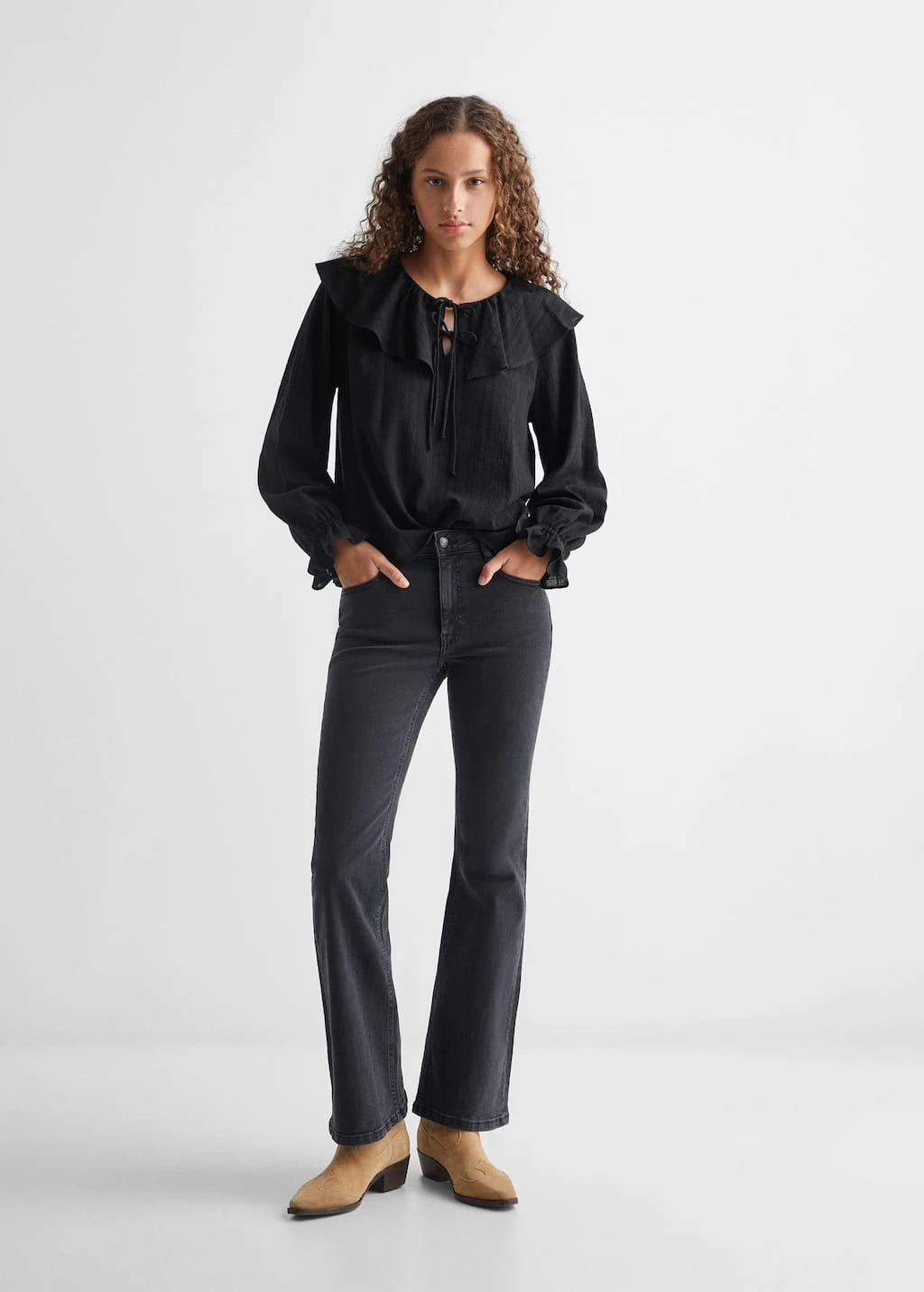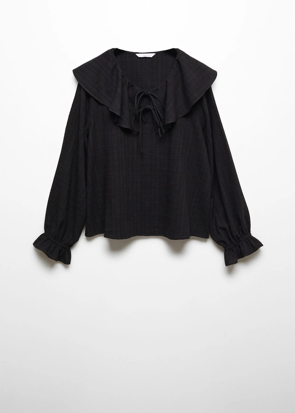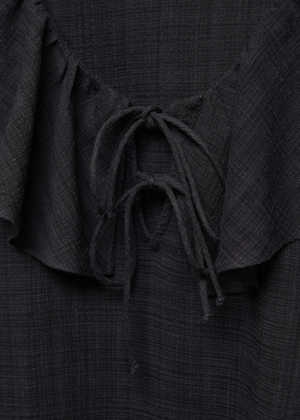 tissu en coton, coupe droite, fermeture au niveau du col, style oversize, detail fronce aux poignets, col en v, manches longues, fermeture a nouerComposition: 65% coton,35% viscose