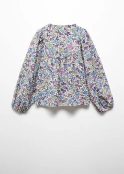 tissu polyester, imprimee, detail fronce, col rond, manches longues, fermeture boutonnee a l’arriereComposition: 95% polyester,5% elasthanne