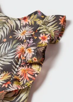 imprime feuilles, imprime fleurs, style crop, detail volante, detail fronce, ouverture au dos, col rond, sans fermeture, sans manchesComposition: 100% coton