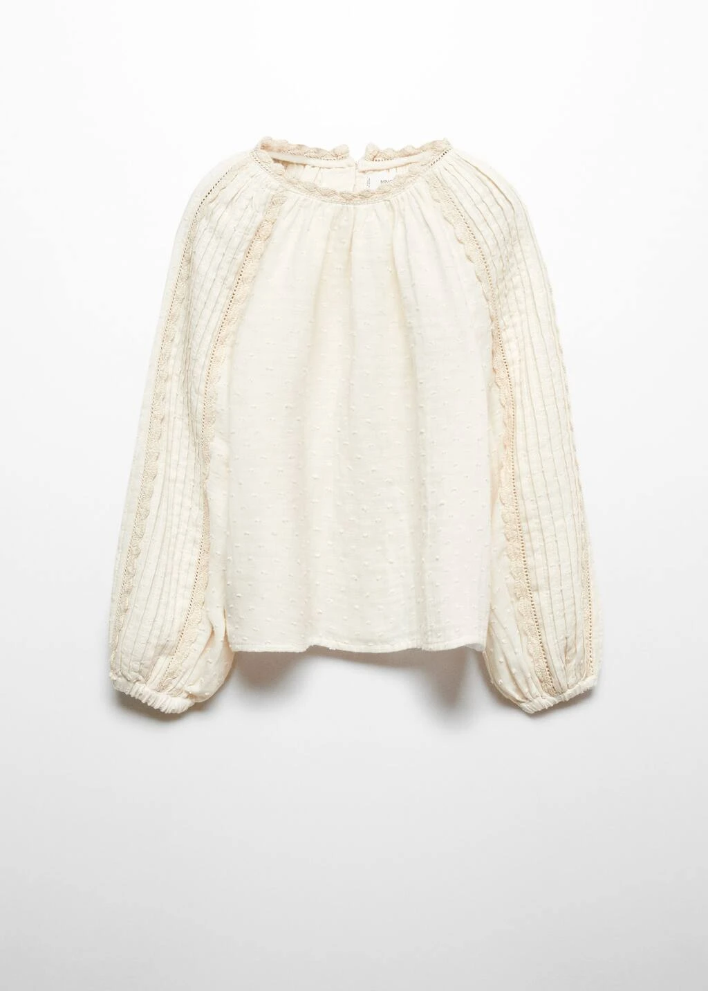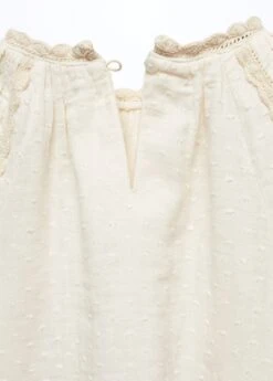 100 % coton, tissu plumetis, detail brode, col rond, manches longues, fermeture arriere, fermeture a boutonComposition: 100% coton. Dentelle: 100% coton