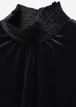 tissu en velours, coupe droite, col montant, manches longues avec poignets elastiques, fermeture boutonnee a l’arriere, collection fetes et ceremonies.Composition: 92% polyester,8% elasthanne. Lisiere: 100% polyester