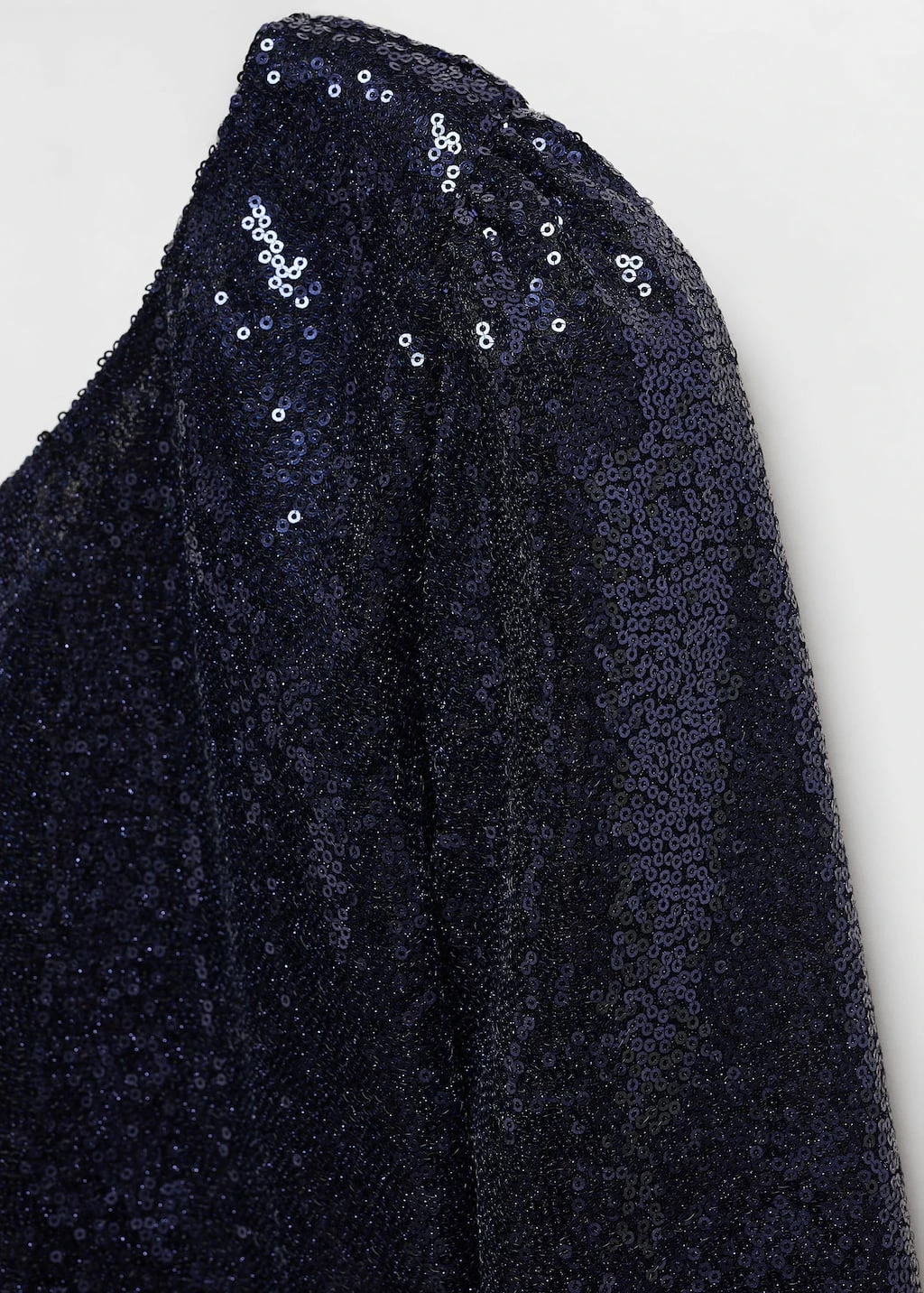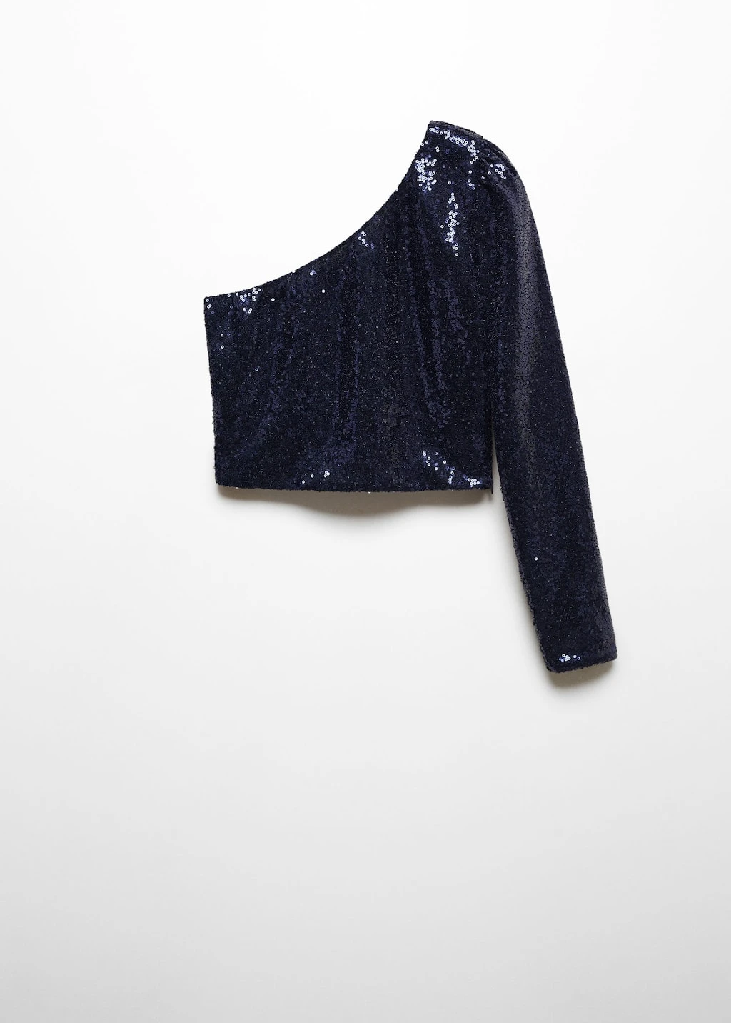 tissu a sequins, style crop, asymetrique, col asymetrique, une manche, sans fermetureComposition: 67% polyester,33% metal. Doublure: 100% polyester