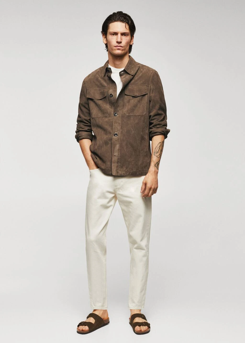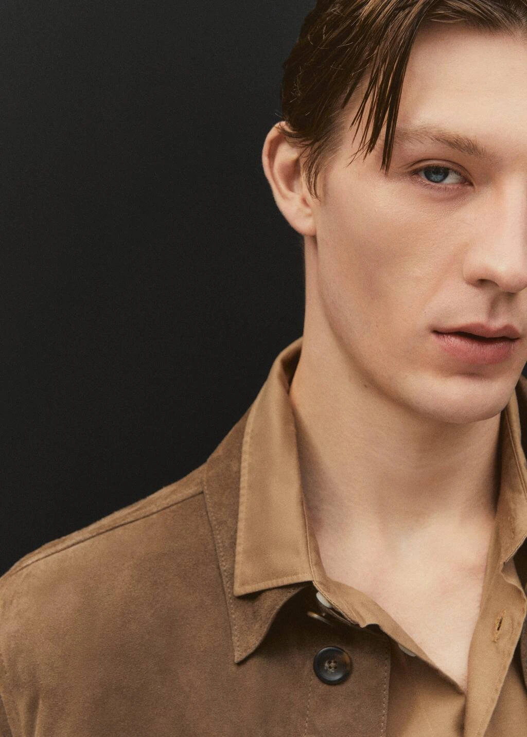 100 % daim, surpiqures decoratives, col classique, fermeture boutonnee sur le devant, manches longues boutonnees, deux poches a rabat sur la poitrine, deux poches laterales, sans doublure interieure, deux poches interieures, le mannequin mesure 190 cm et porte une taille m, campagne antoine griezmann, le cuir est un materiau delicat qui developpe naturellement une patine dont il faut prendre soin. pour conserver vos produits en cuir en bon etat, nous vous conseillons de les tenir a l’ecart de la poussiere et de les nettoyer si necessaire avec un chiffon doux en effectuant des mouvements circulaires.Composition: 100% cuir de chevre. Doublure poches: 100% coton