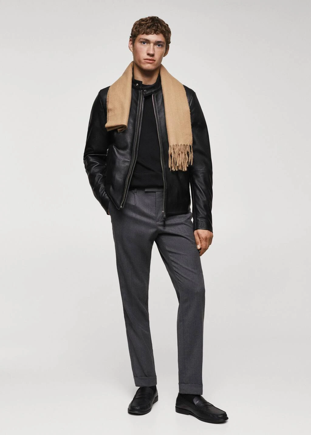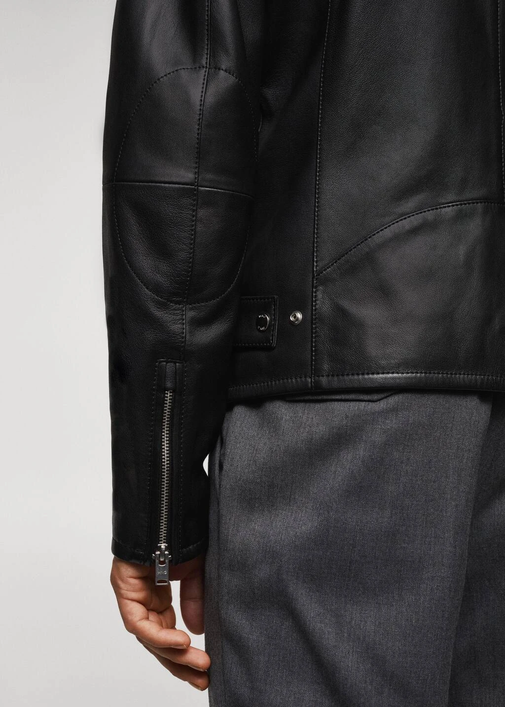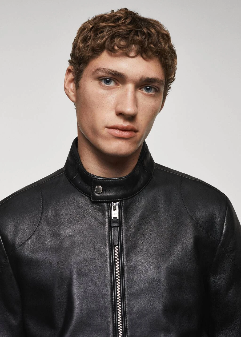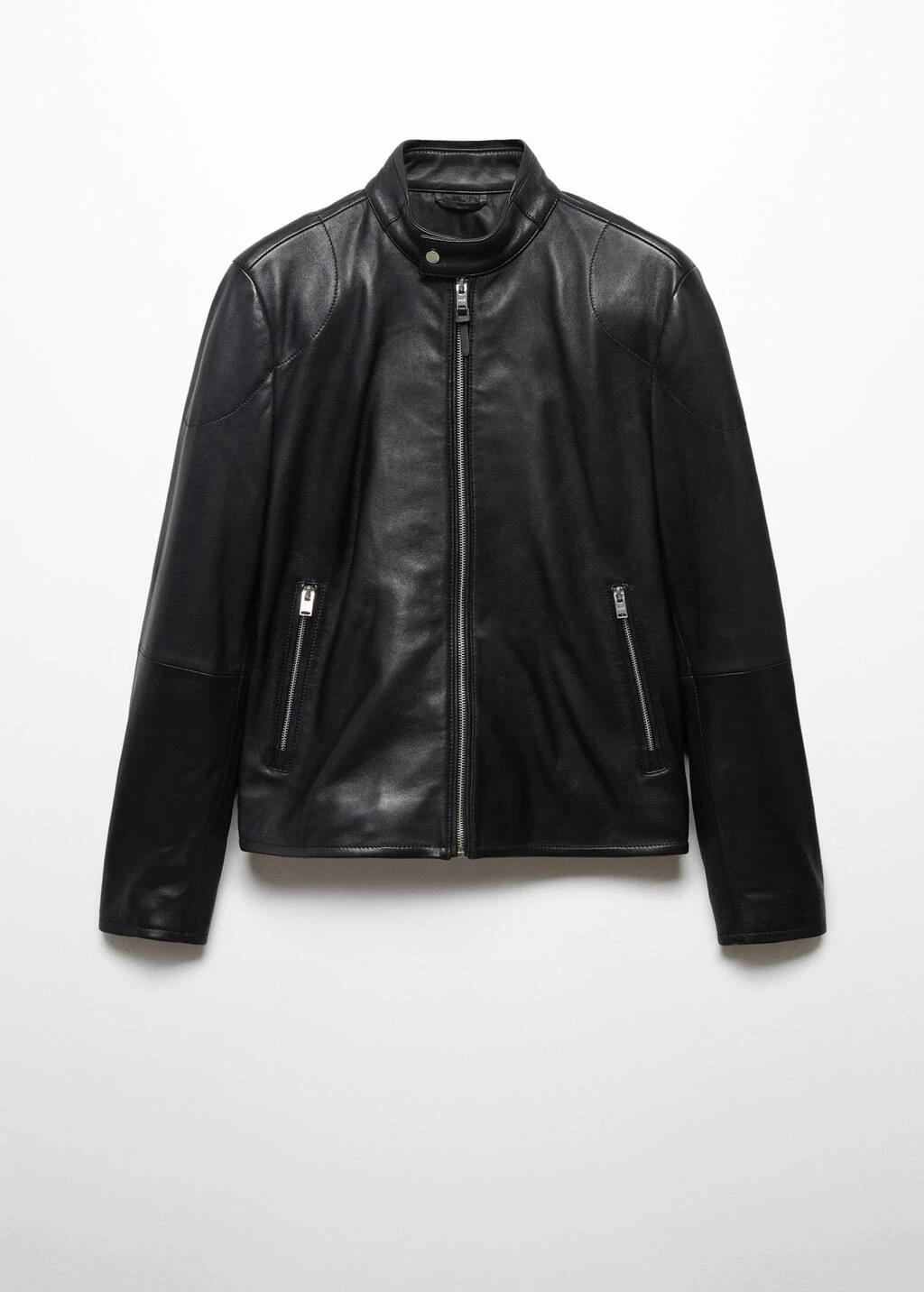 100 % cuir ovin, slim-fit, style biker, coupe courte, col cheminee a bouton, fermeture eclair a lâavant, manches longues, deux poches zippees sur les cotes, doublure, poche interieure, le mannequin mesure 185 cm et porte une taille m, le cuir est un materiau delicat qui developpe naturellement une patine dont il faut prendre soin. pour conserver vos produits en cuir en bon etat, nous vous conseillons de les tenir a l’ecart de la poussiere et de les nettoyer si necessaire avec un chiffon doux en effectuant des mouvements circulaires.Composition: 100% cuir ovin. Doublure: 55% polyester,45% viscose. Doublure manches: 55% polyester,45% viscose. Doublure poches: 100% coton