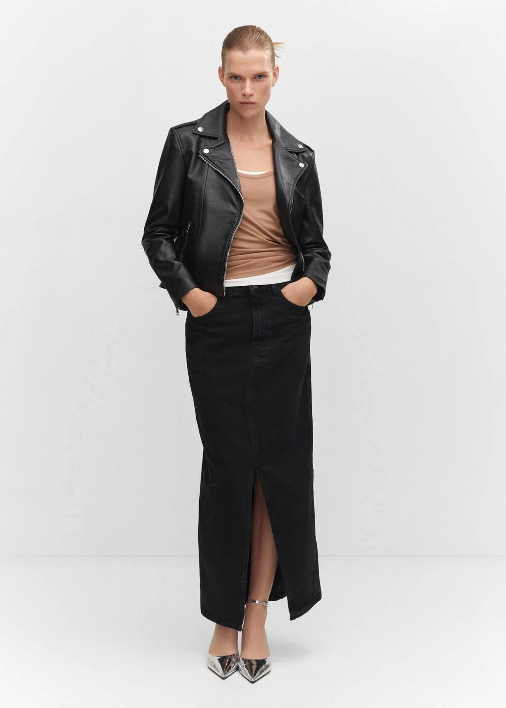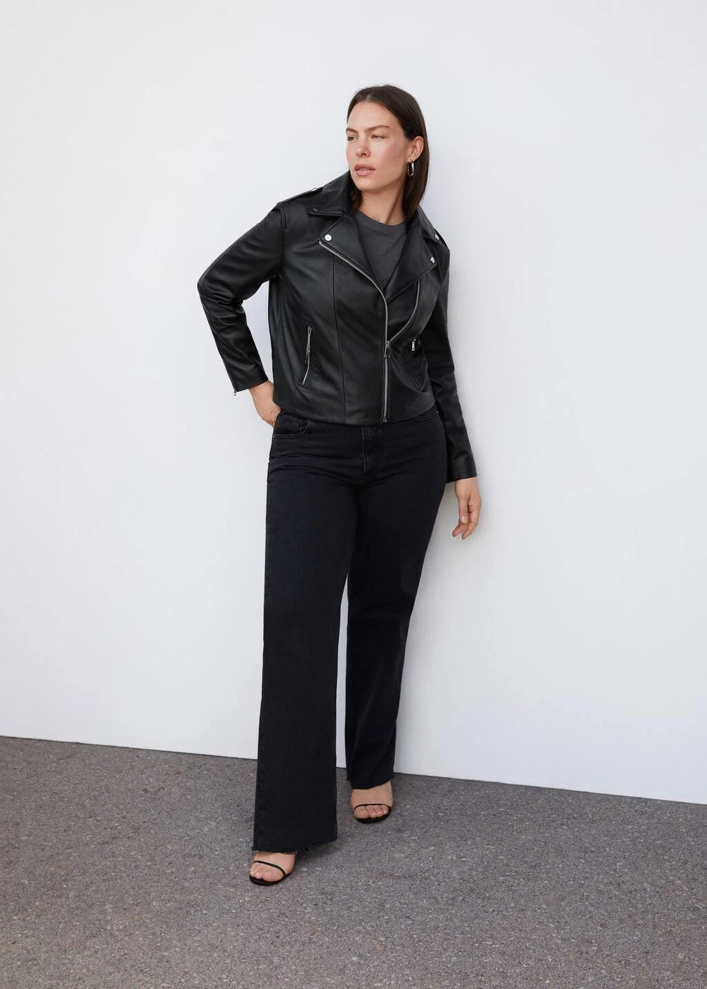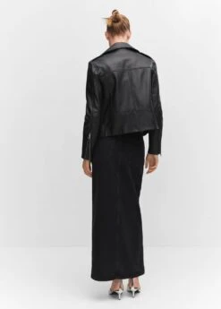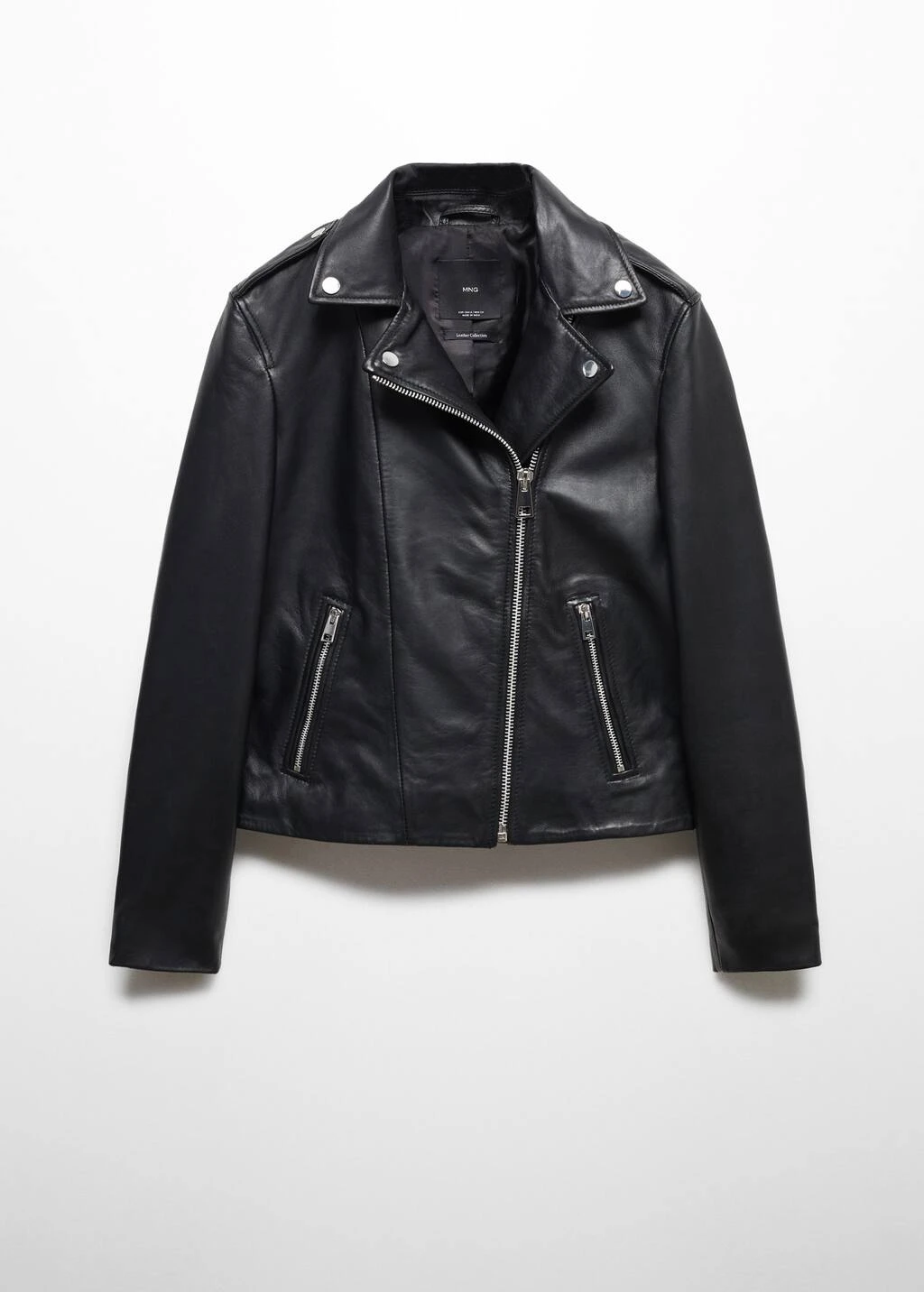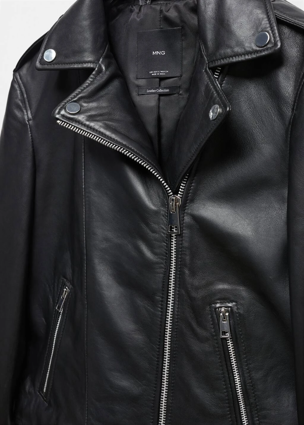 100Â % cuir nappa, doublure uniquement, style biker, coupe courte, col a revers, manches longues, fermeture zippee asymetrique, slim-fit, deux poches zippees sur le devant, col chemise, doublure, disponible plus, taille moyenne, fermeture frontale, saison des festivals, coupe standardComposition: 100% cuir ovin. Doublure: 100% polyester