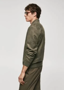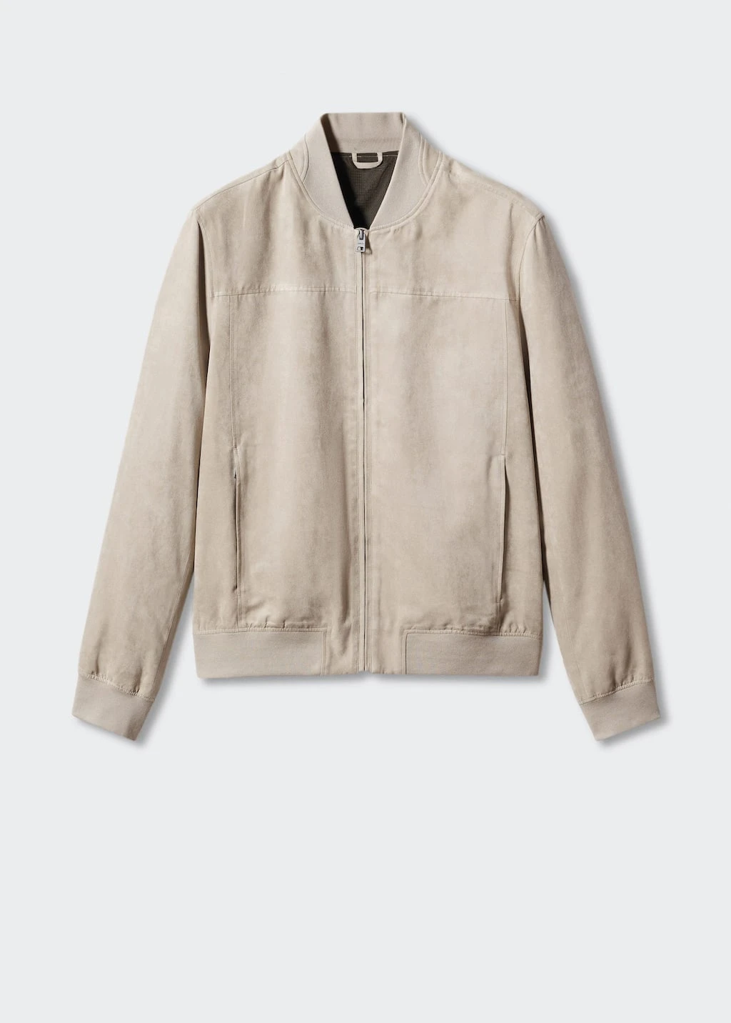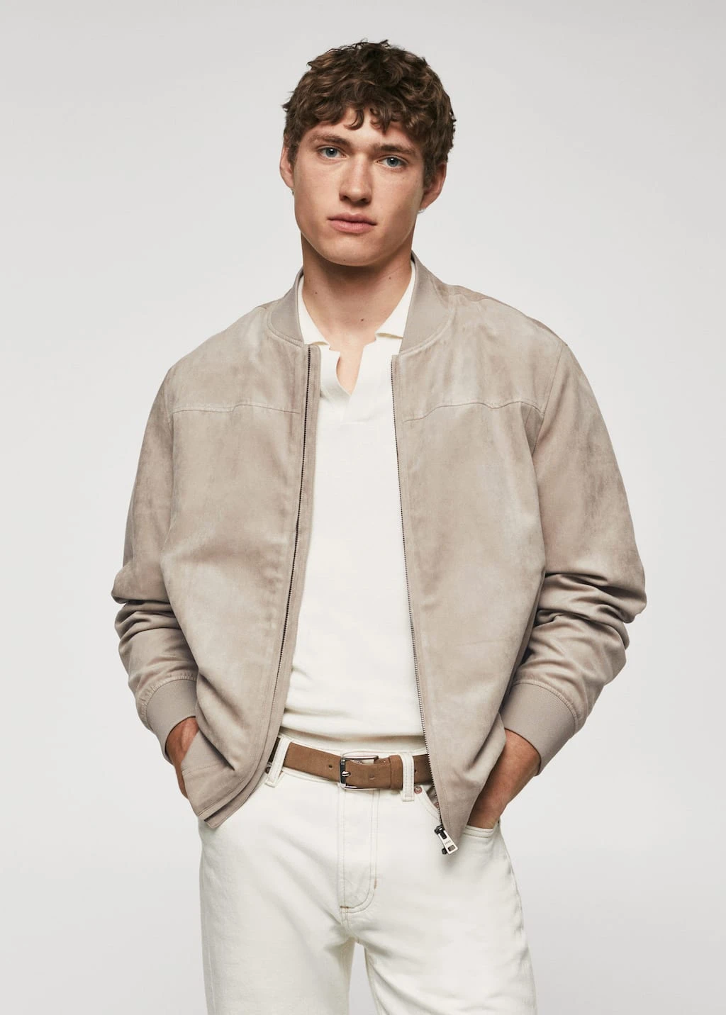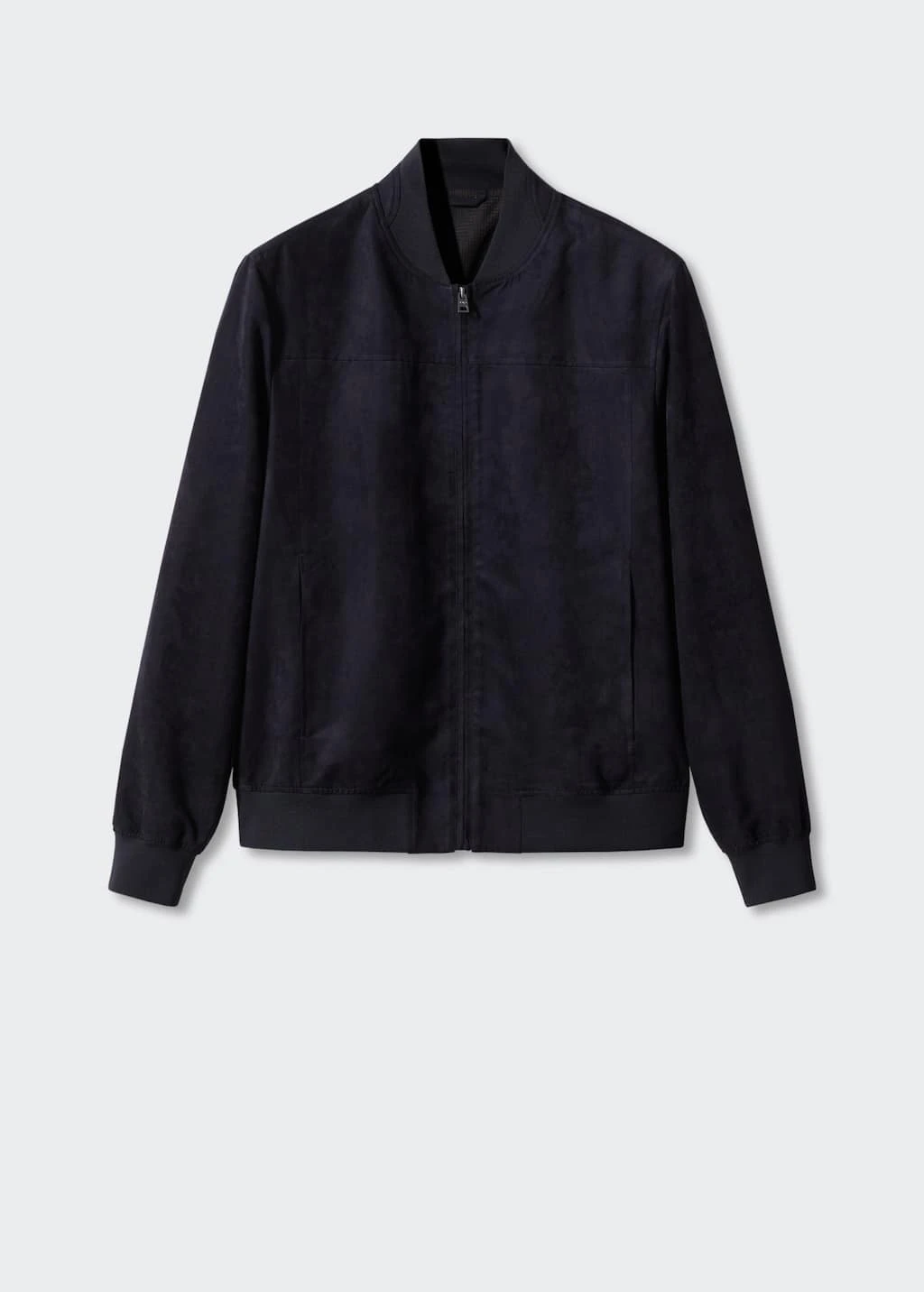 style bomber, imitation daim, fermeture eclair a lâavant, manches longues avec poignets elastiques, deux poches a rabat sur les cotes, bas elastique, poche interieure zippee, doublure, le mannequin mesure 183 cm et porte une taille mComposition: 60% polyester,40% polyester recyclĂ©. Doublure: 100% polyester. CannelĂ©: 98% polyester,2% elasthanne