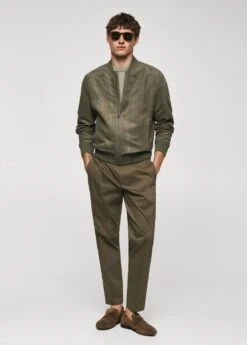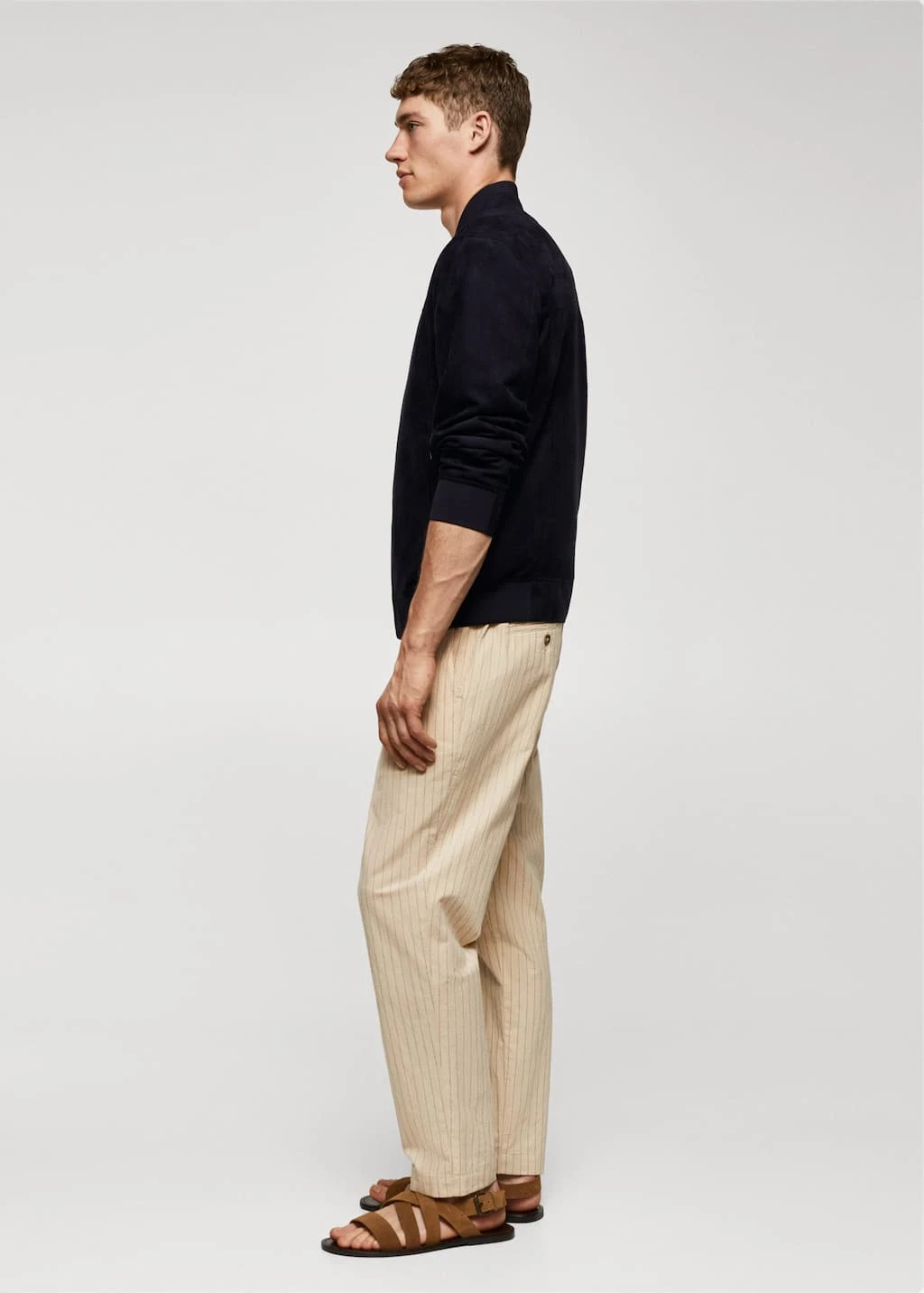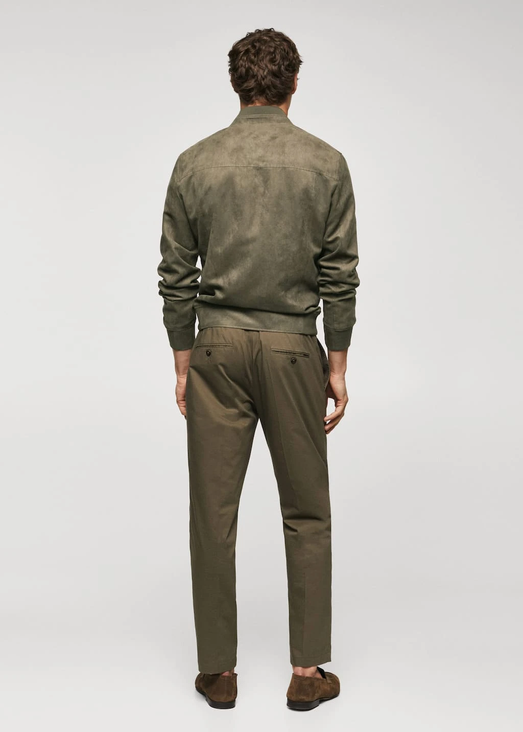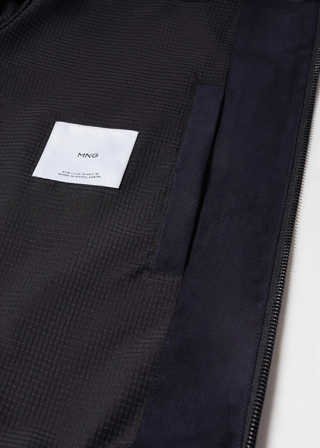 style bomber, imitation daim, fermeture eclair a lâavant, manches longues avec poignets elastiques, deux poches a rabat sur les cotes, bas elastique, poche interieure zippee, doublure, le mannequin mesure 183 cm et porte une taille mComposition: 60% polyester,40% polyester recyclĂ©. Doublure: 100% polyester. CannelĂ©: 98% polyester,2% elasthanne
