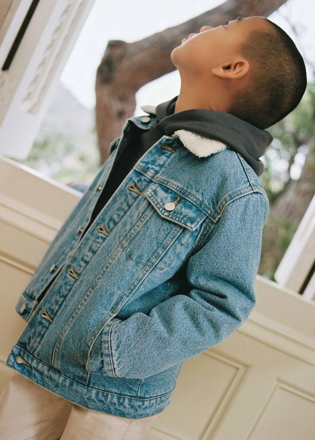 tissu en coton de style jean, coupe droite, interieur moutonnee, col chemise, manches longues, fermeture a boutons sur le devantComposition: 100% coton. Doublure: 100% polyester. Doublure manches: 100% polyester