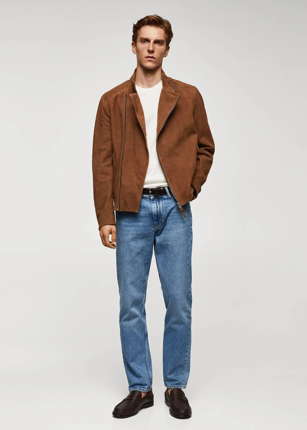 100 % daim, slim-fit, coupe courte, col cheminee boutonne, fermeture eclair asymetrique , deux poches passepoilees a fermeture eclair a l’avant , bas droit, doublure, poche interieure zippee, le mannequin mesure 190 cm et porte une taille mComposition: 100% cuir de chevre. Doublure: 55% polyester,45% coton. Doublure manches: 55% polyester,45% coton. Doublure poches: 100% coton