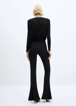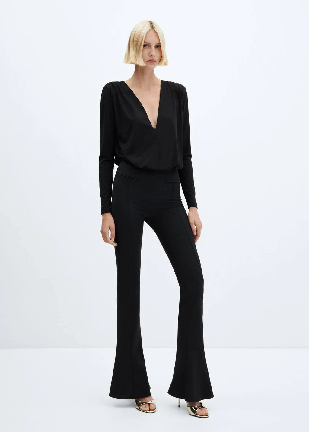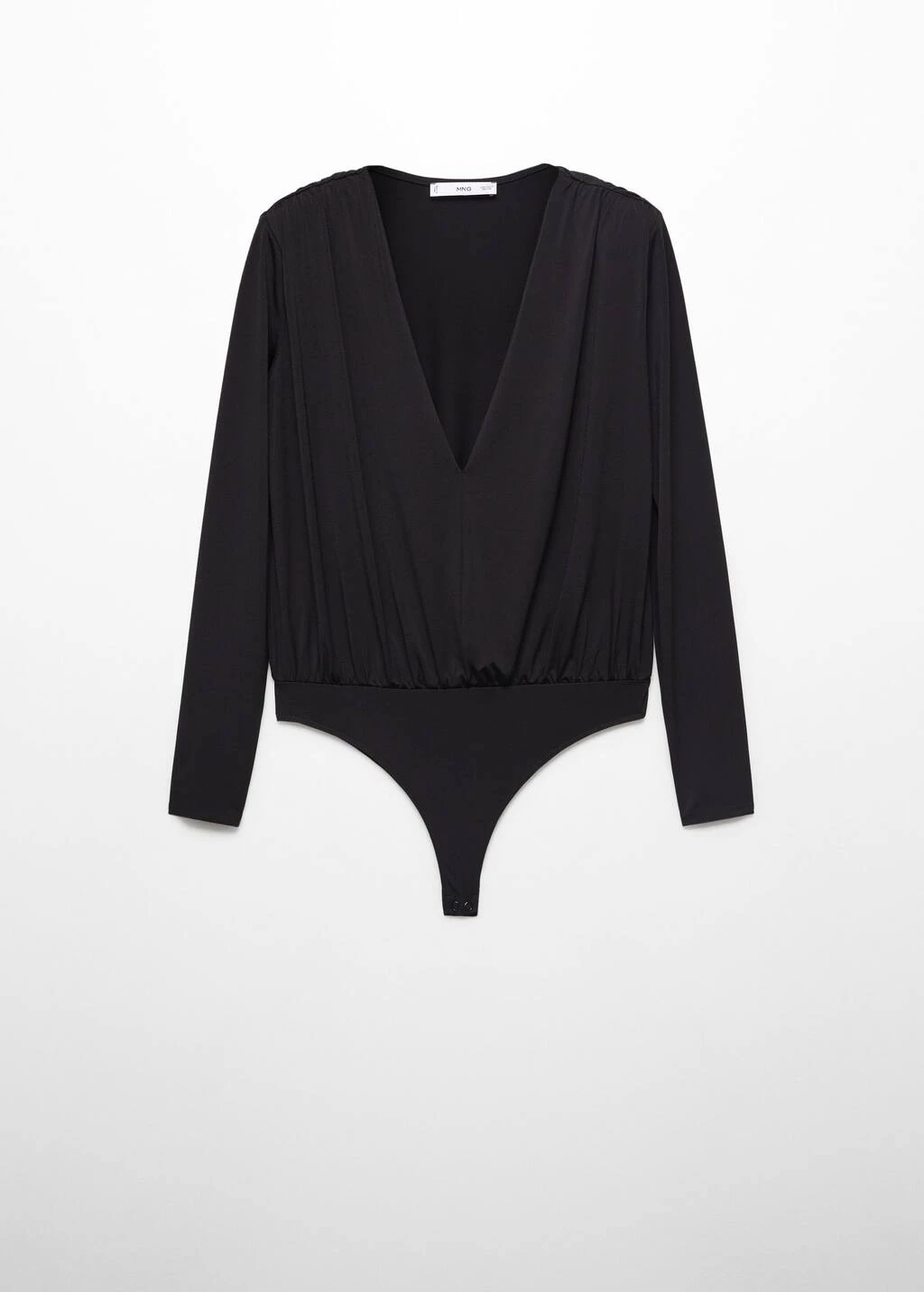 tissu fluide, droit, col en v, manches longues, fermeture a boutons-pression a la base, details fronces, collection fetes et ceremonies.Composition: 88% polyester,12% elasthanne