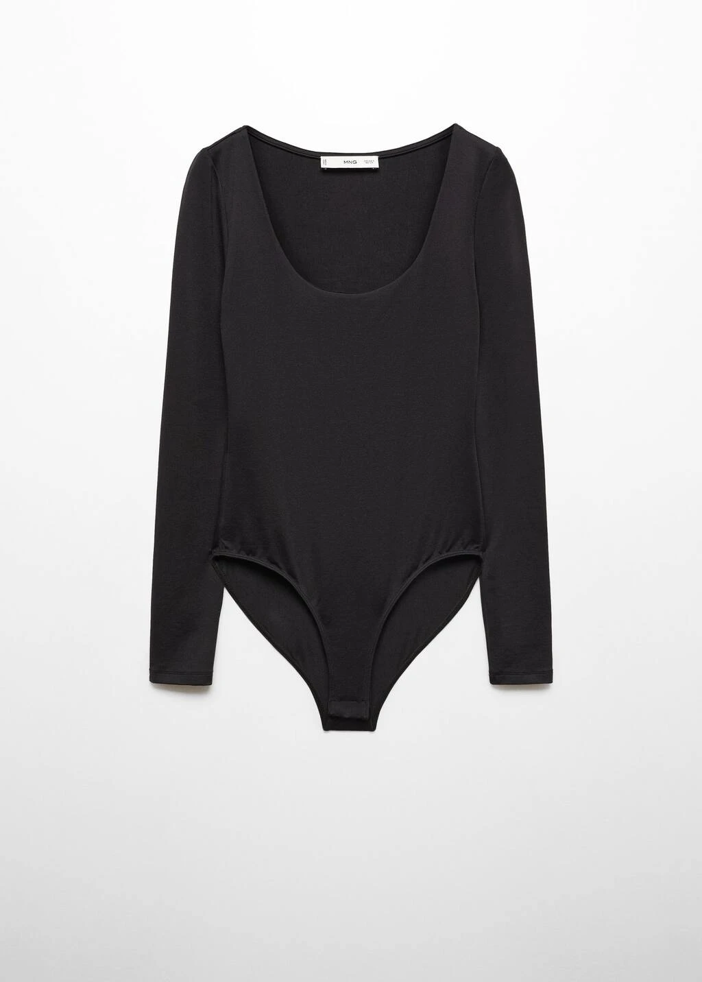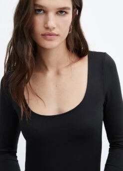ajuste, col echancre, manches longues, fermeture a boutons en basComposition: 94% polyamide,6% elasthanne