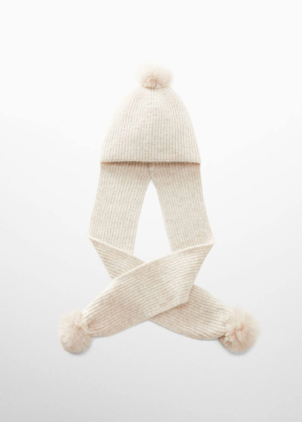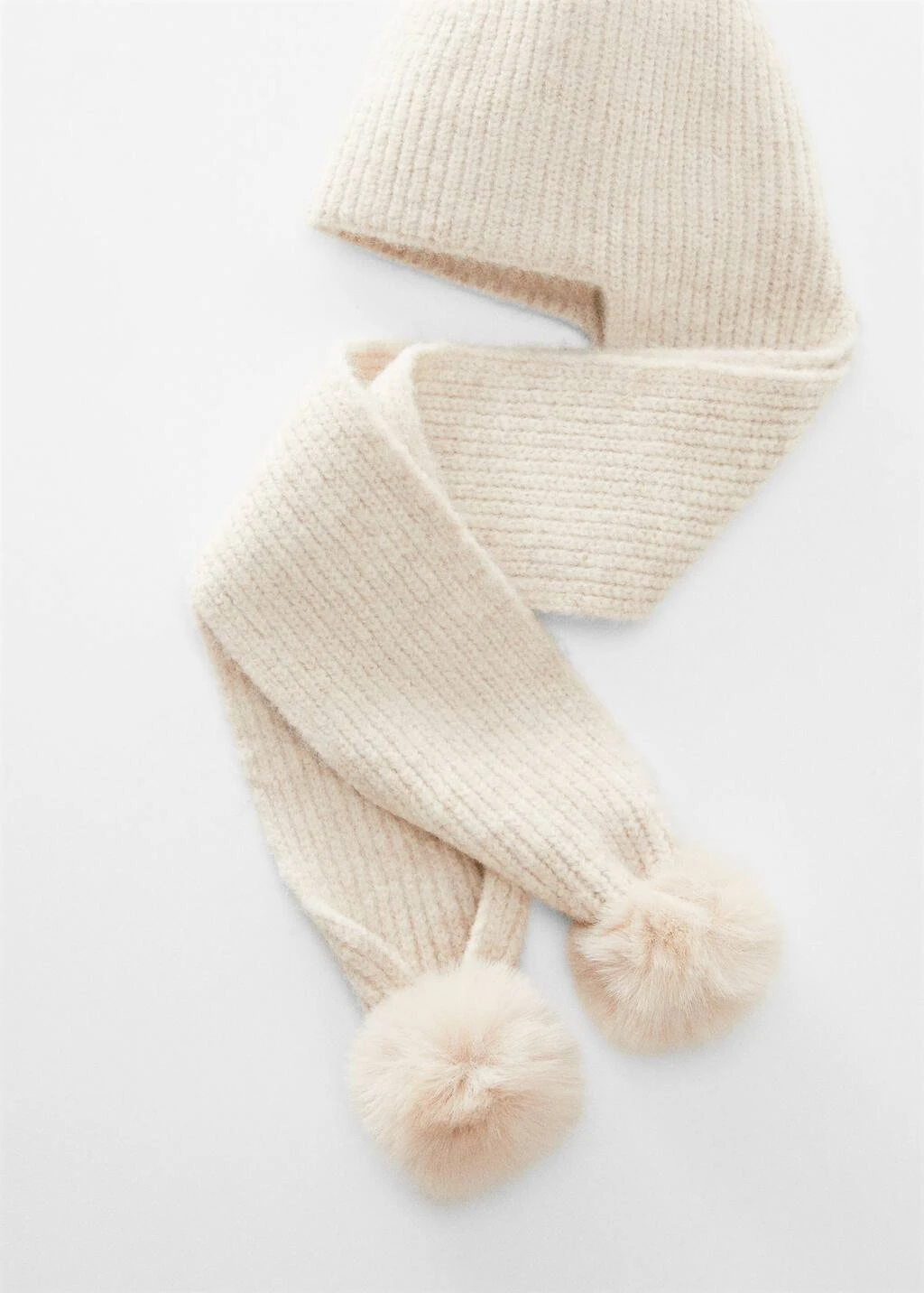 tissu en maille, detail de pomponsComposition: 65% polyester,13% acrylique,13% polyamide,6% laine,3% elasthanne