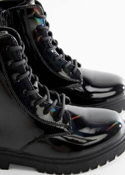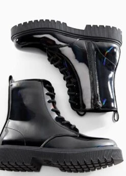 effet verni, effet holographique , semelle track, bout rond, lacetsCarre: 94% polyurethane,6% polyester. Doublure: 79% polyester,21% polyurethane. Semelle: 95% coton,5% polyester. Semelle: 100% caoutchouc thermoplastique. Fixation semelle: 100% collée