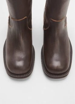 100 % cuir bovin, effet use, style biker, tige moyenne, bout rond, flat, fermeture eclair laterale, boucle decorative, doublureCarre: 100% cuir bovin. Doublure: 84% polyurethane,9% coton,7% polyester. Semelle: 100% polyurethane. Semelle: 100% caoutchouc. Fixation semelle: 100% collée