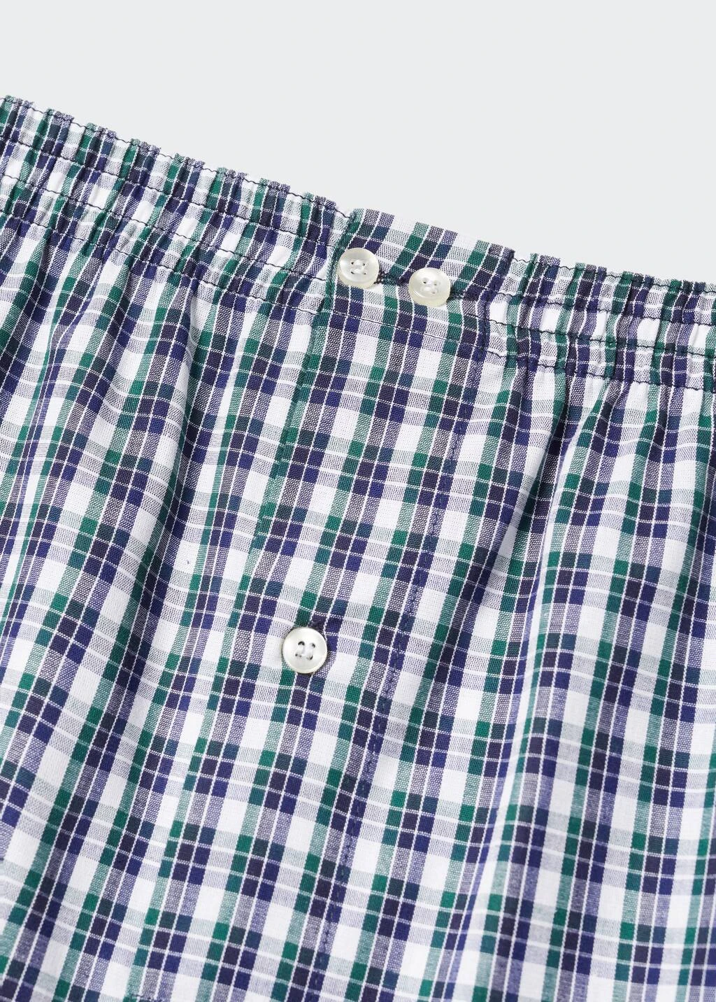 tissu 100Â % coton, imprime mini-carreaux vichy, type boxer, taille elastiquee, fermeture a deux boutons, avec ce vetement en coton, vous soutenez notre investissement dans la mission de better cotton. ce tissu est un equilibre de masse qui remplace ou melange du coton better cotton avec du coton conventionnel, aussi il est possible quâil ne contienne pas de better cotton. les agriculteurs partenaires beneficient d’un soutien et d’une formation continus.Composition: 100% coton