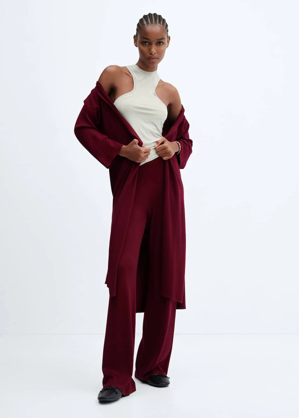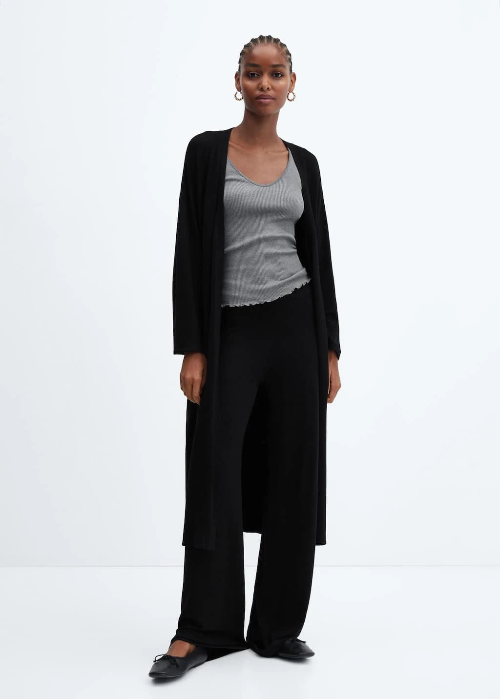 tissu en maille fine, coupe longue, coupe droite, manches longues, sans fermeture, total lookComposition: 80% viscose,20% polyamide