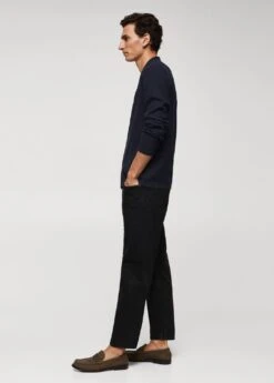 tissu en maille fine, coupe droite, col a revers, design cotele, fermeture a boutons sur le devant, manches longues, bas droit, le mannequin mesure 190 cm et porte une taille mComposition: 40% viscose,40% polyester recyclé,20% coton