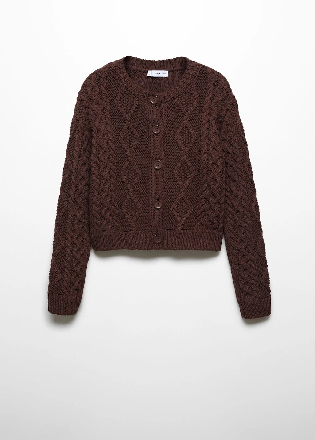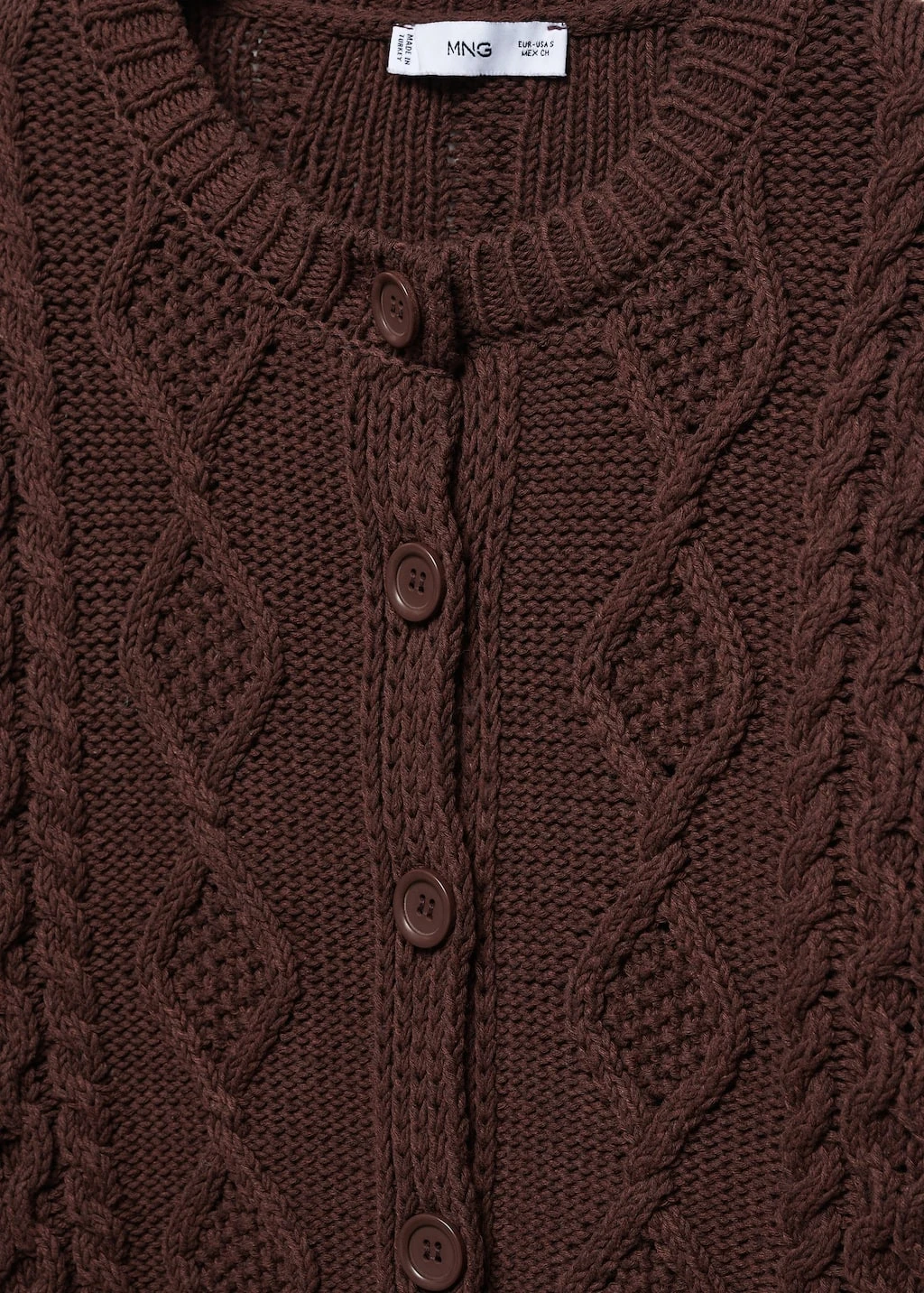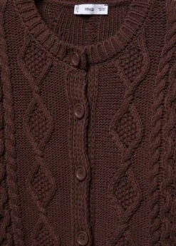 tissu en grosse maille, maille torsadee, coupe droite, col rond, manches longues, fermeture boutonnee sur le devantComposition: 61% polyester,39% coton