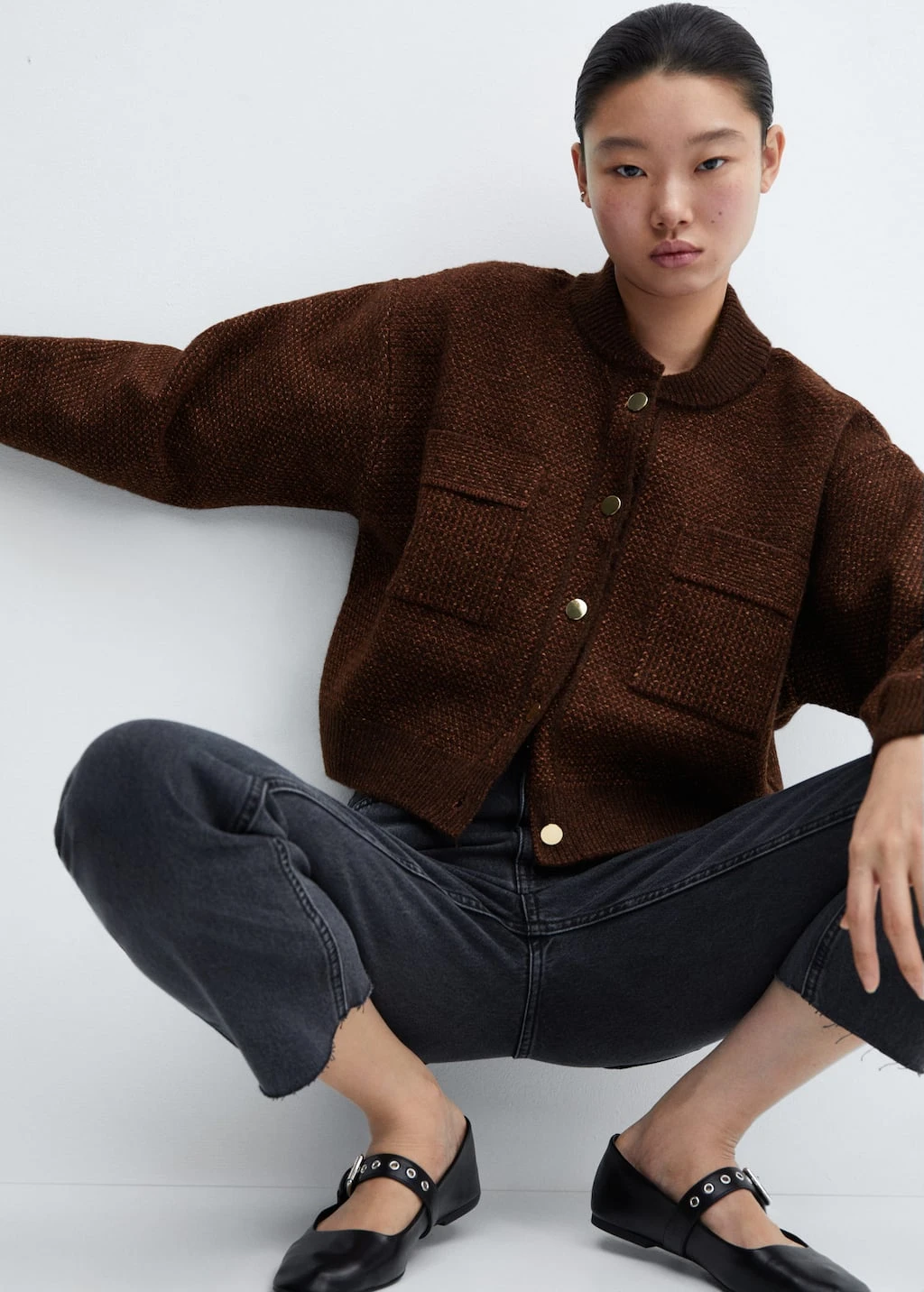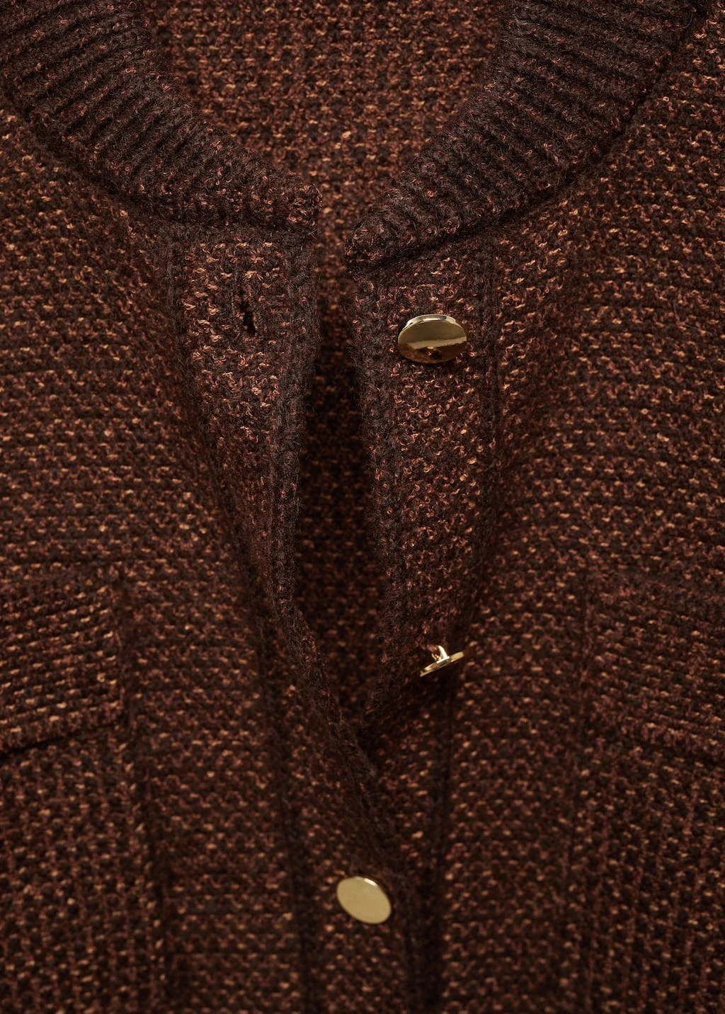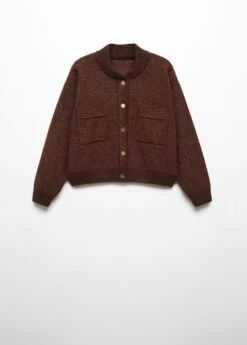 maille moyenne, tissu de coton melange, style bomber, col bomber, manches longues, fermeture a boutons-pression sur le devant, deux poches a rabat a lâavant, bords cotelesComposition: 40% acrylique,28% coton,28% polyester,4% viscose