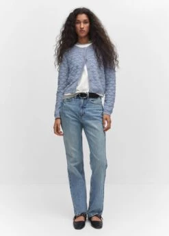 tissu en maille, tissu texture, coupe droite, coupe courte, manches longues, fermeture boutonnee sur le devant, boutons effet bijoux, total lookComposition: 67% acrylique,33% polyamide