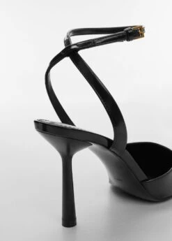 talon aiguille, a pointe, effet verni, bride de cheville, fermeture a boucle, talon de 9 cm, collection fetes et ceremoniesCarre: 96% polyurethane,4% zinc. Doublure: 96% polyurethane,4% polyester. Semelle: 100% polyurethane. Semelle: 100% thermoplastique. Fixation semelle: 100% collée