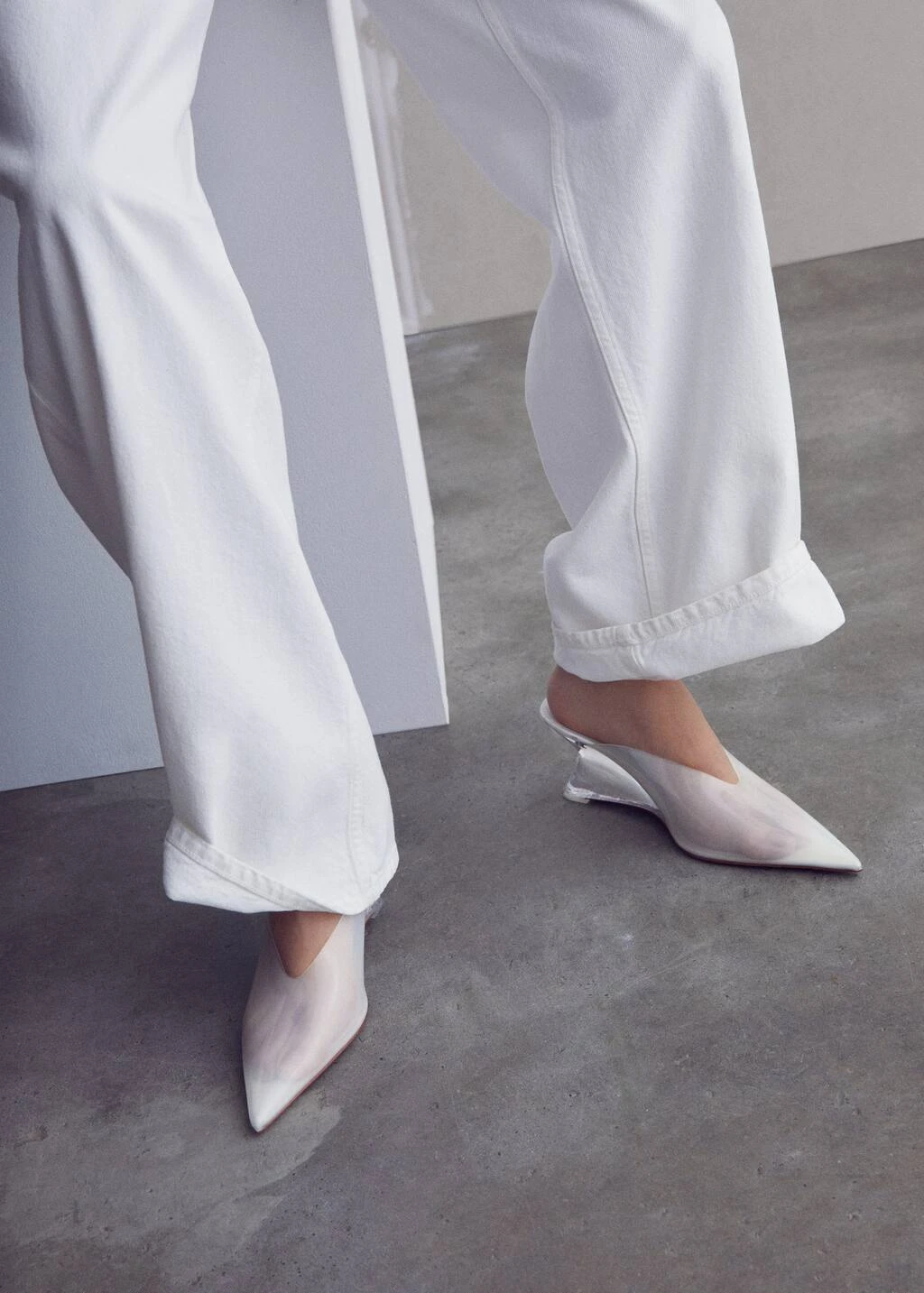 talon compense, design transparent, empiecement vinyle transparent, a pointe, sans fermeture, talon de 7 cm, collection fetes et ceremoniesCarre: 100% thermoplastique. Semelle: 100% polyurethane. Semelle: 100% caoutchouc. Fixation semelle: 100% collée