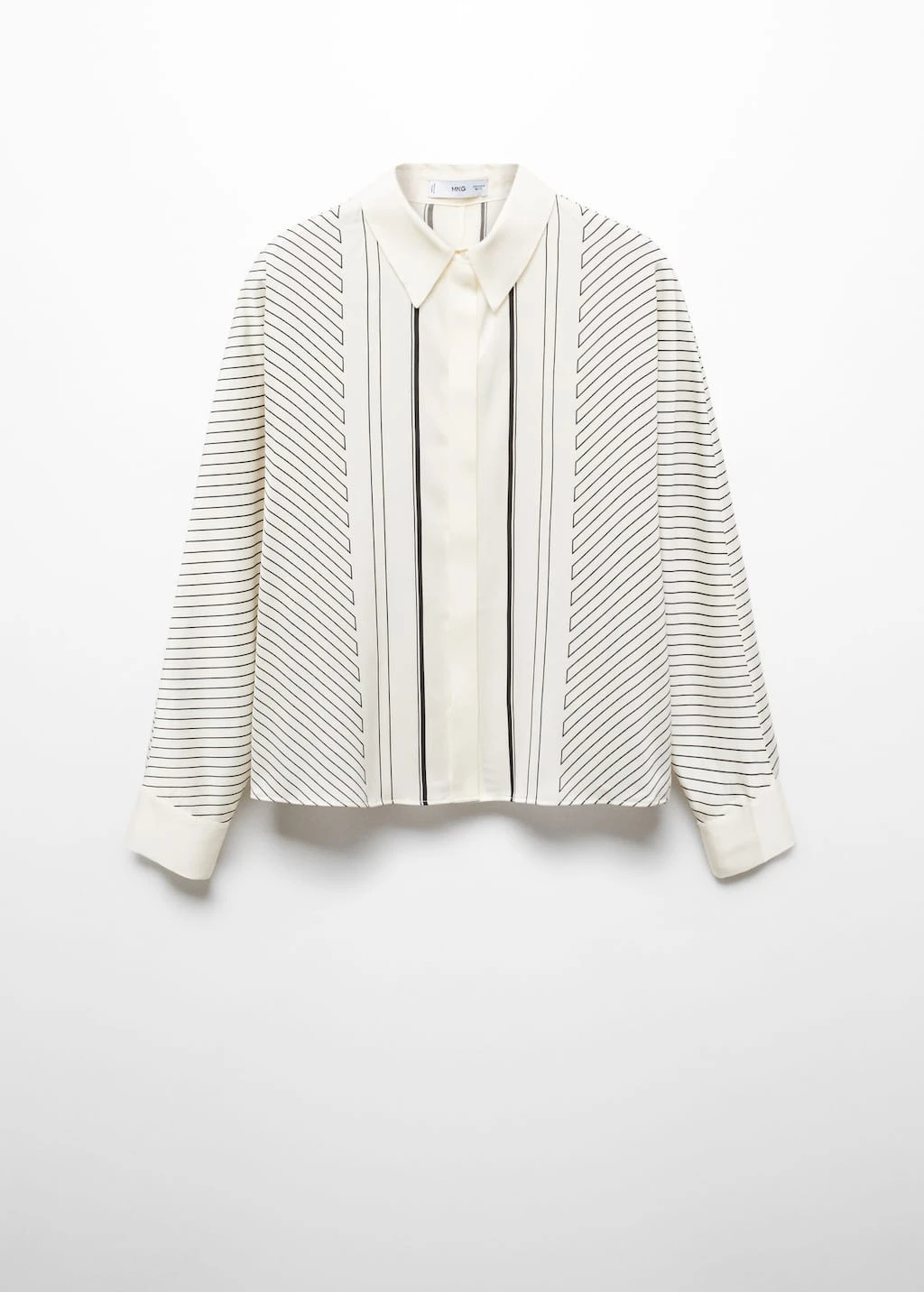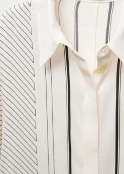 tissu satine, tissu fluide, style oversize, bicolore, imprime geometrique, col chemise, manches longues boutonnees, fermeture boutonnee sur le devant, disponible plusComposition: 97% polyester,3% elasthanne