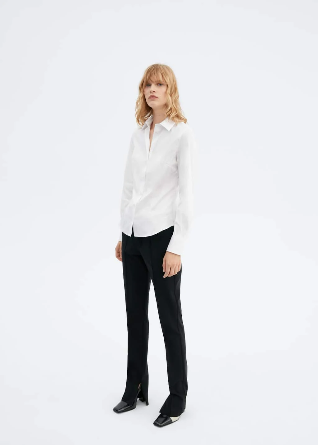 collection selection, tissu de coton melange, ajuste, col chemise, manches longues avec poignets boutonnes, fermeture a boutons sur le devant, une selection de pieces qui vous accompagneront lors du retour au bureau. confectionnee avec des matieres de qualite pour creer une garde-robe feminine et contemporaine pour votre quotidien.