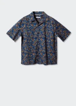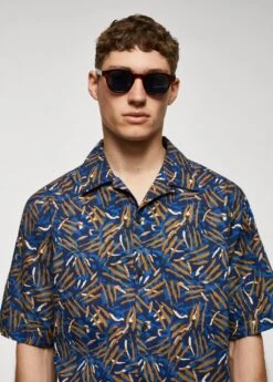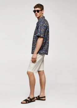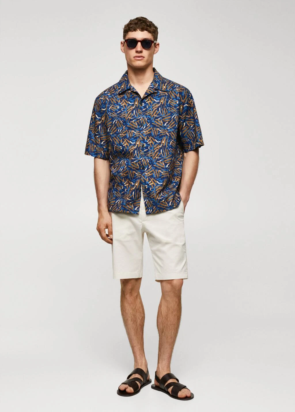 tissu 100 % coton, regular-fit, imprime feuilles abstraites, col bowling, fermeture a boutons sur le devant, manches courtes, bas droit, le mannequin mesure 187 cm et porte une taille mComposition: 100% coton