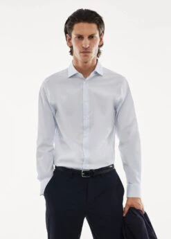 slim-fit, tissu de coton melange, finition microstructure, bi-stretch : tissu a elasticite bidirectionnelle pour plus de confort, repassage facile : tissu facile a repasser, lavable en machine ou a la main, col italien, manches longues boutonnees, fermeture a boutons sur le devant, bas arrondi, le mannequin mesure 187 cm et porte une taille m, « la selection performance propose des vetements fabriques a partir de fibres techniques qui vous permettront de rester impeccable et a lâaise toute la journee, quoi que vous fassiez et ou que vous alliez. cette selection haute performance presente une vaste gamme de caracteristiques avancees telles que des tissus bi-stretch, a sechage rapide, faciles a repasser, thermoregulateurs, respirants ou resistants a lâeau, organises en quatre categories generales : thermoregulateur, fonctionnel, facile d’entretien et confortable. « Composition: 96% coton,4% elasthanne
