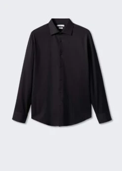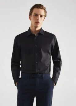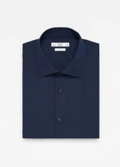 slim-fit, tissu de popeline 100 % coton, repassage facile : tissu facile a repasser, col americain, col cutaway, manches longues avec poignets boutonnes, fermeture boutonnee sur le devant, bas arrondi, le mannequin mesure 185 cm et porte une taille m, le tissu de cette chemise possede une finition particuliere, il a ete traite de facon a etre moins froisse apres le lavage et a se repasser plus facilement et efficacement. durabilite : 30/40 lavagesComposition: 100% coton