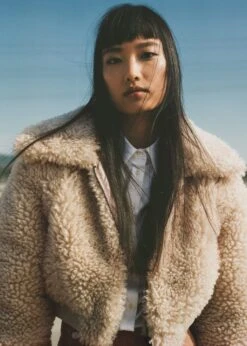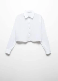 tissu de coton melange, droit, style crop, col chemise, manches longues boutonnees, fermeture boutonnee sur le devantComposition: 73% coton,24% polyamide,3% elasthanne